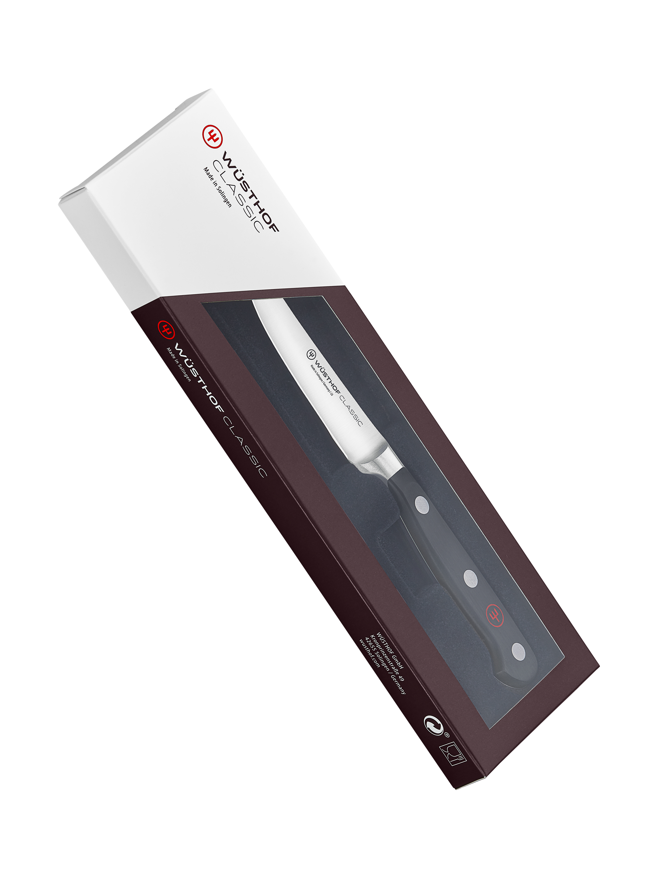 Developed in consultation with professional chefs, this paring knife from WÜSTHOF is an all-rounder for smaller foods and more detailed work. A nimble tool with a slim blade and plain edge, ideal for paring, trimming, coring, peeling and finely dicing.