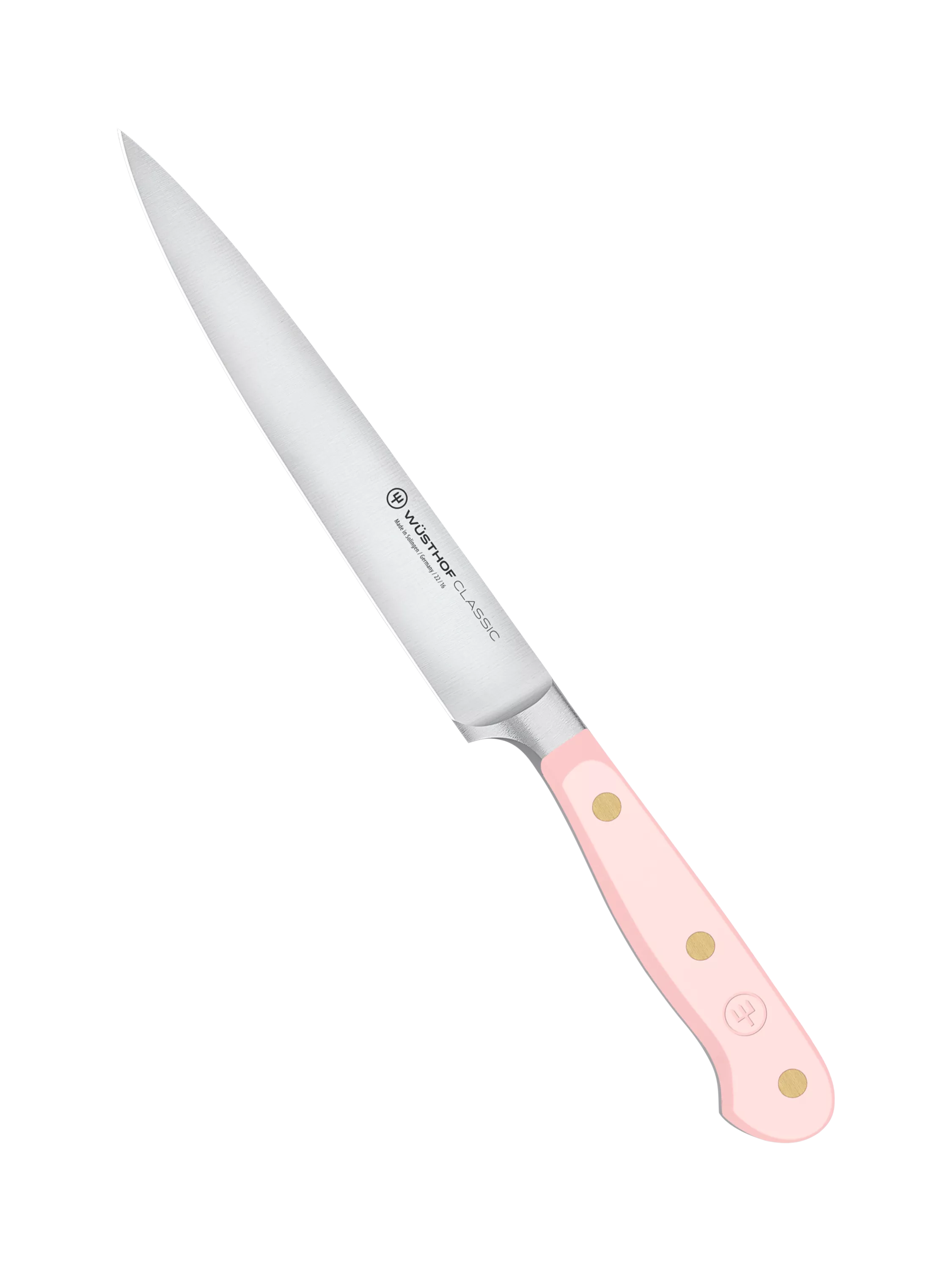 Developed in consultation with professional chefs, this utility knife from WÜSTHOF is versatile with its slim blade and a plain edge for cutting or slicing smaller cuts of meat, vegetables and herbs, as well as chopping, cleaning and shaping fruits and vegetables for food presentation.