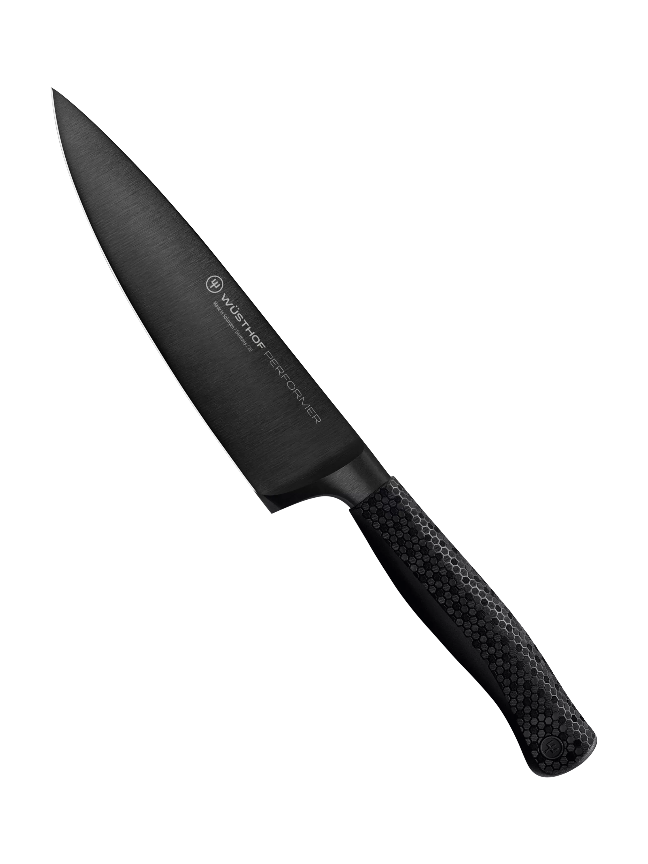 The Performer range of kitchen knives features an ultra-hard diamond-like carbon (DLC) finish on the blades, the gold standard on the knife market. Thanks to the reduced friction, the long-lasting blade glides effortlessly through both hard and soft clippings and is also resistant to external influences due to its extreme hardness. The innovative, ergonomic Hexagon Power Grip handle with its offset non-slip honeycomb structure ensures ultimate control and is ideal for all working conditions.
