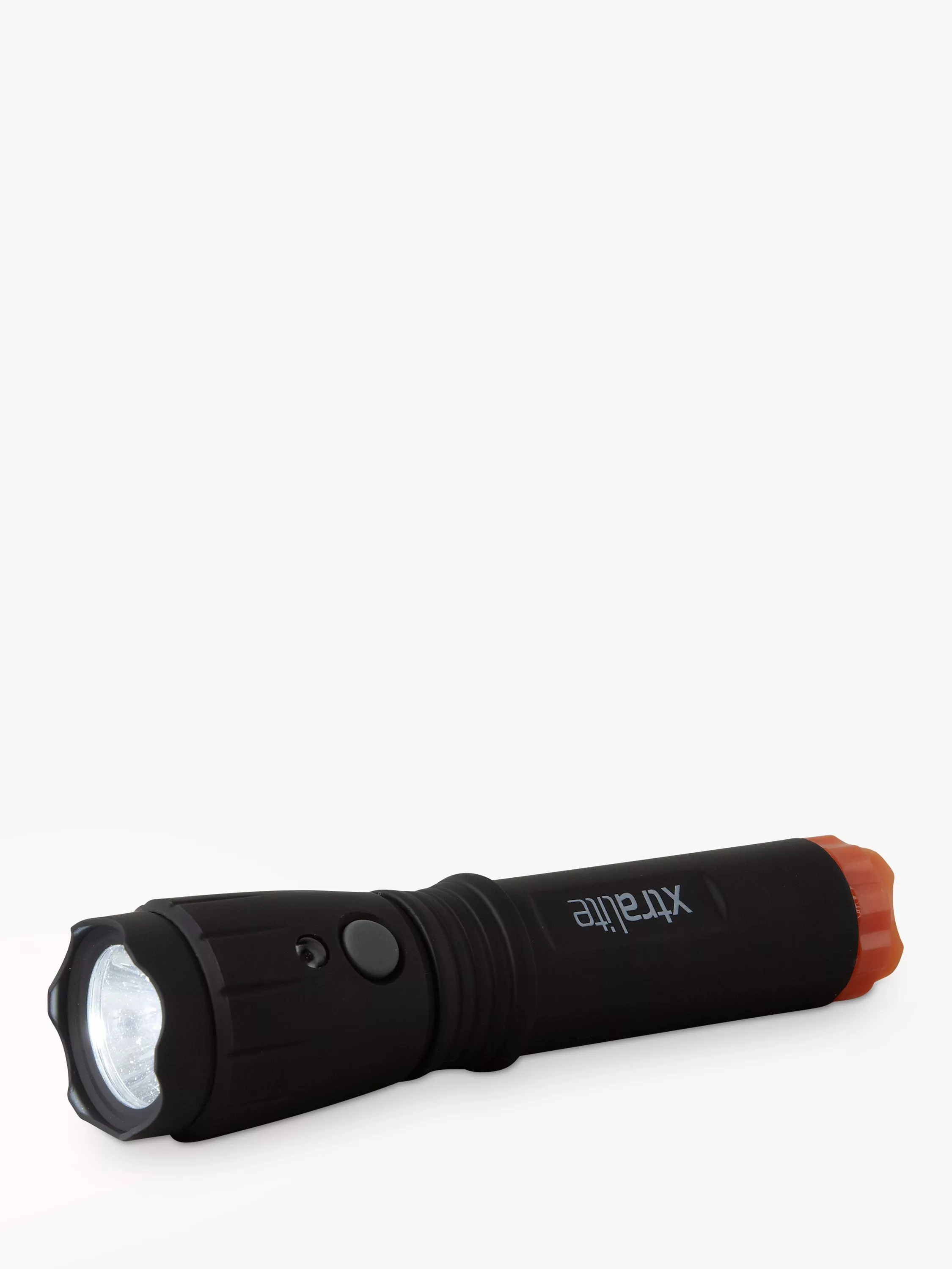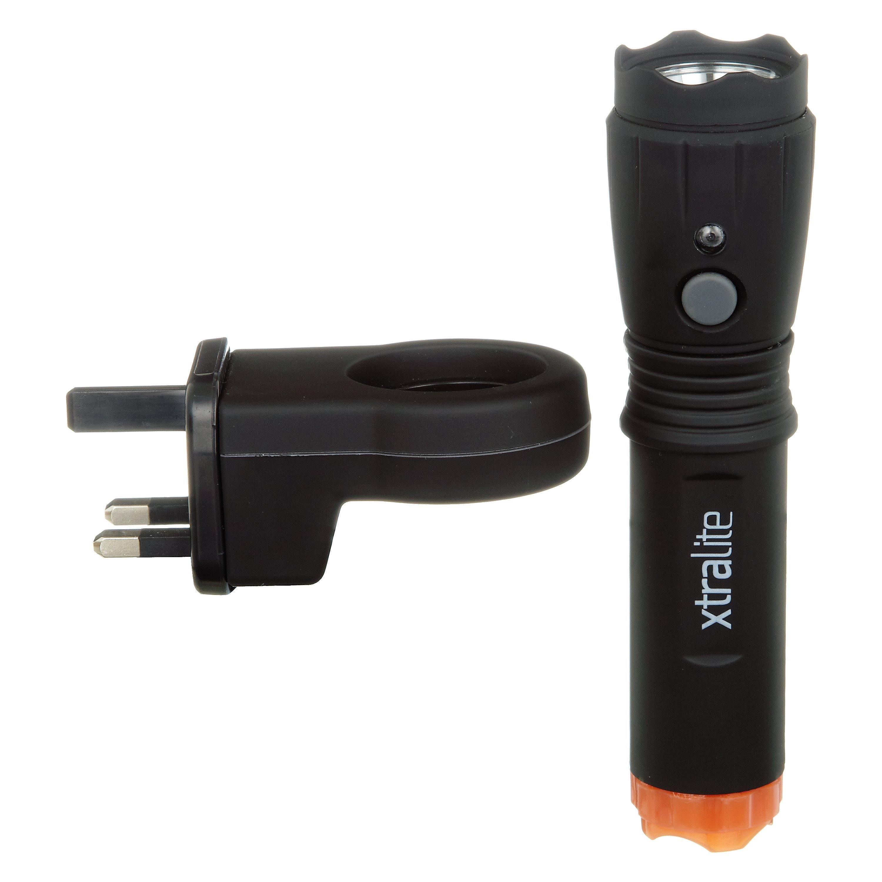 An outdoor light with a 2-lumen LED orange, glow night light with dawn to dusk automatic sensor. It also functions as a torch with one super-bright LED (60lm) and comes on automatically during a power outage when left in charger/holder. Torch has 3 modes low, high and flashing (for emergencies). It takes 15 hours for full charge with up to 6 hours use from a full charge. Suitable for use outdoors but must be charged indoors only.