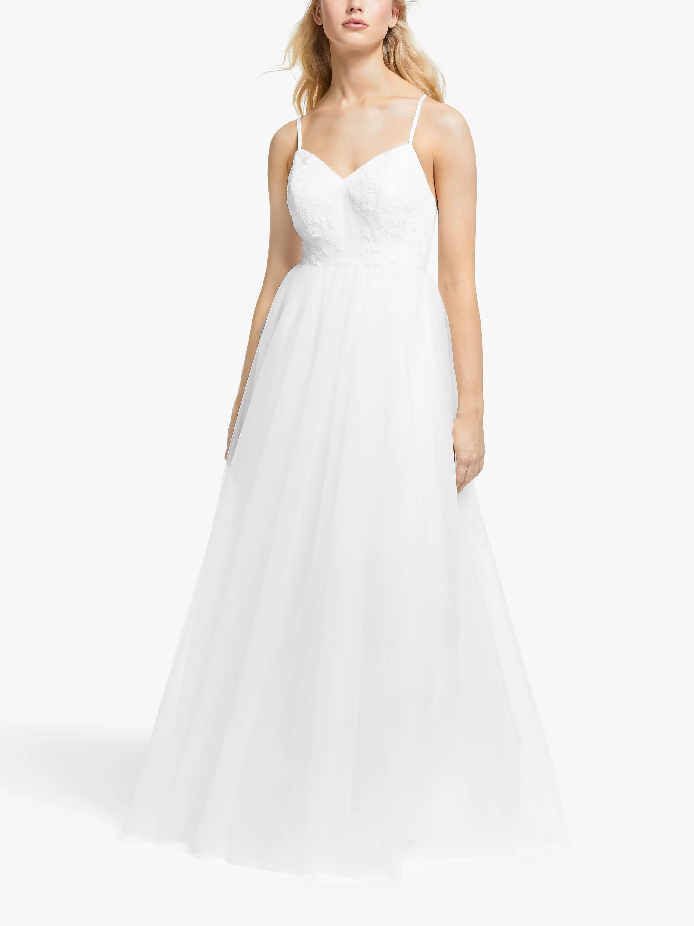 Simply elegant and emanating sleek feminity, this bridal gown from Y.A.S is created with a beautiful full tulle skirt. The romantic dress provides glamorous appeal and designed with a textured bodice while the straps cross over at the back. Style with a messy up-do and simple jewellery for evening glam.
