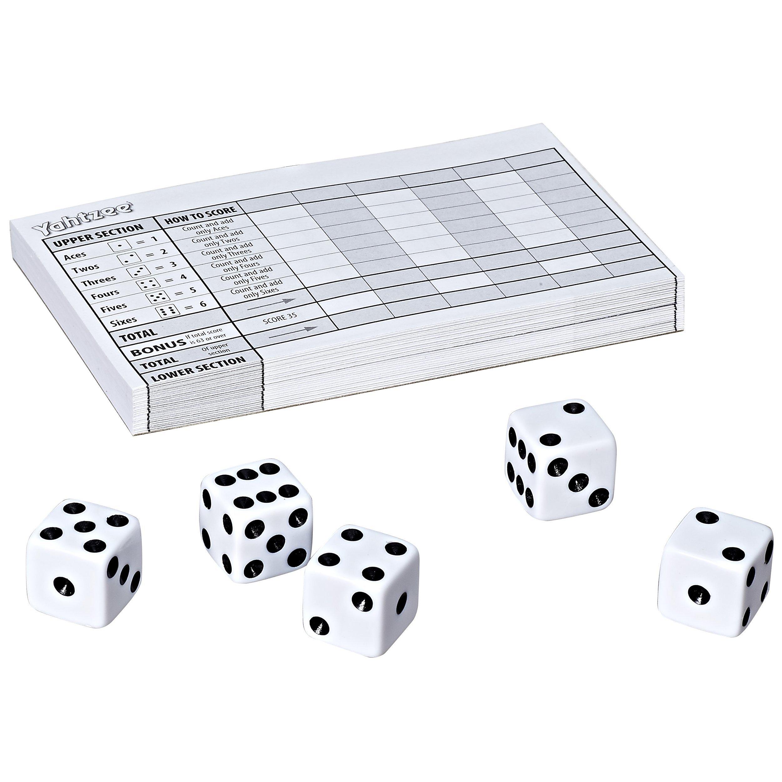 With a sleek shaker and 5 dice, you're ready to roll! Take turns rolling dice to try to score combos. You get a total of 13 turns and may roll up to three times on a turn. At the end of each turn, you must fill in one empty box in your column on the score card. The player with the highest grand total at the end of all 13 rounds wins.