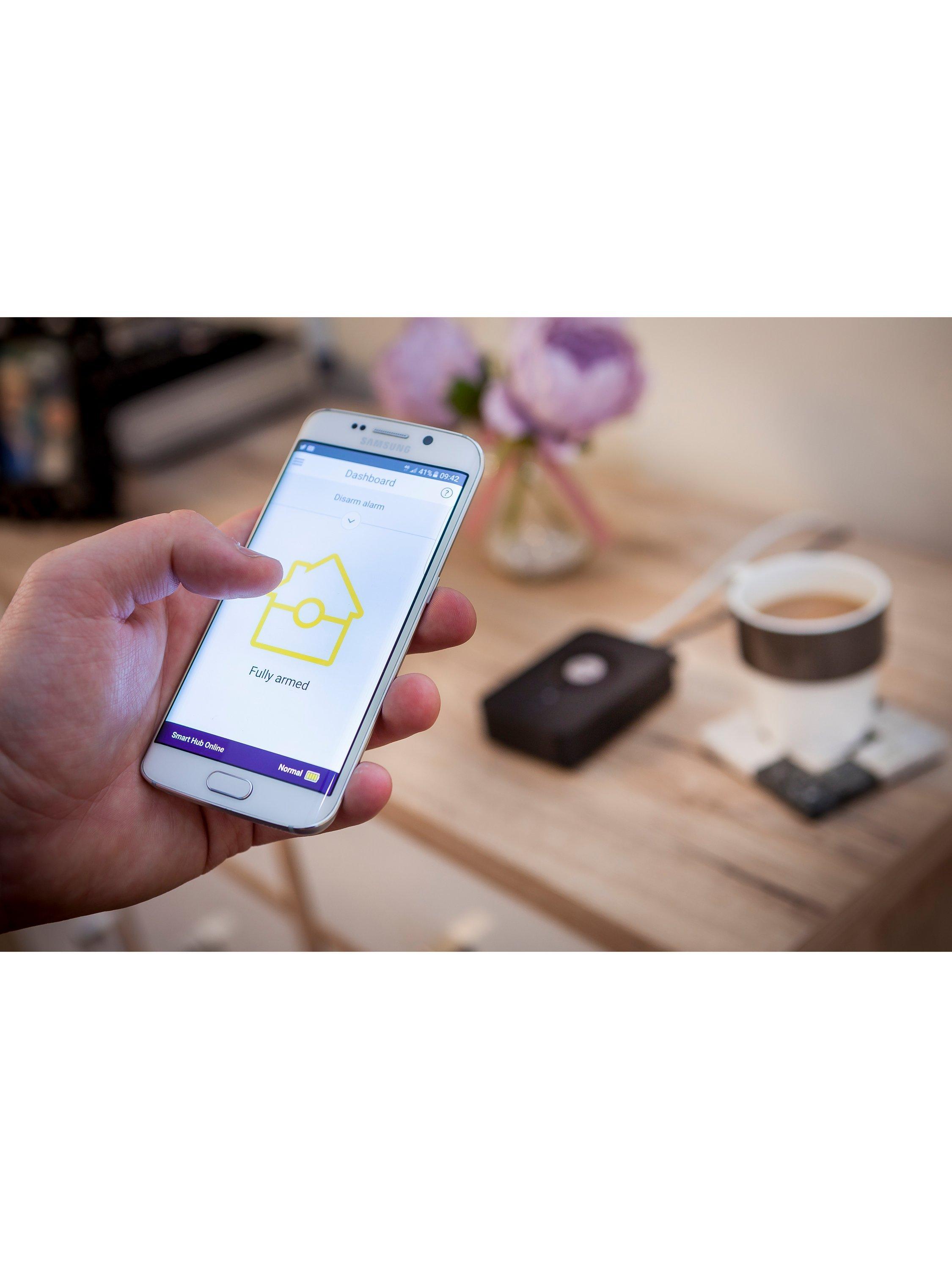 The Yale HSA App Enabled Alarm Kit can be remotely controlled via its portable keypad or the Yale app on your smartphone, with the ability to part or fully arm the system.