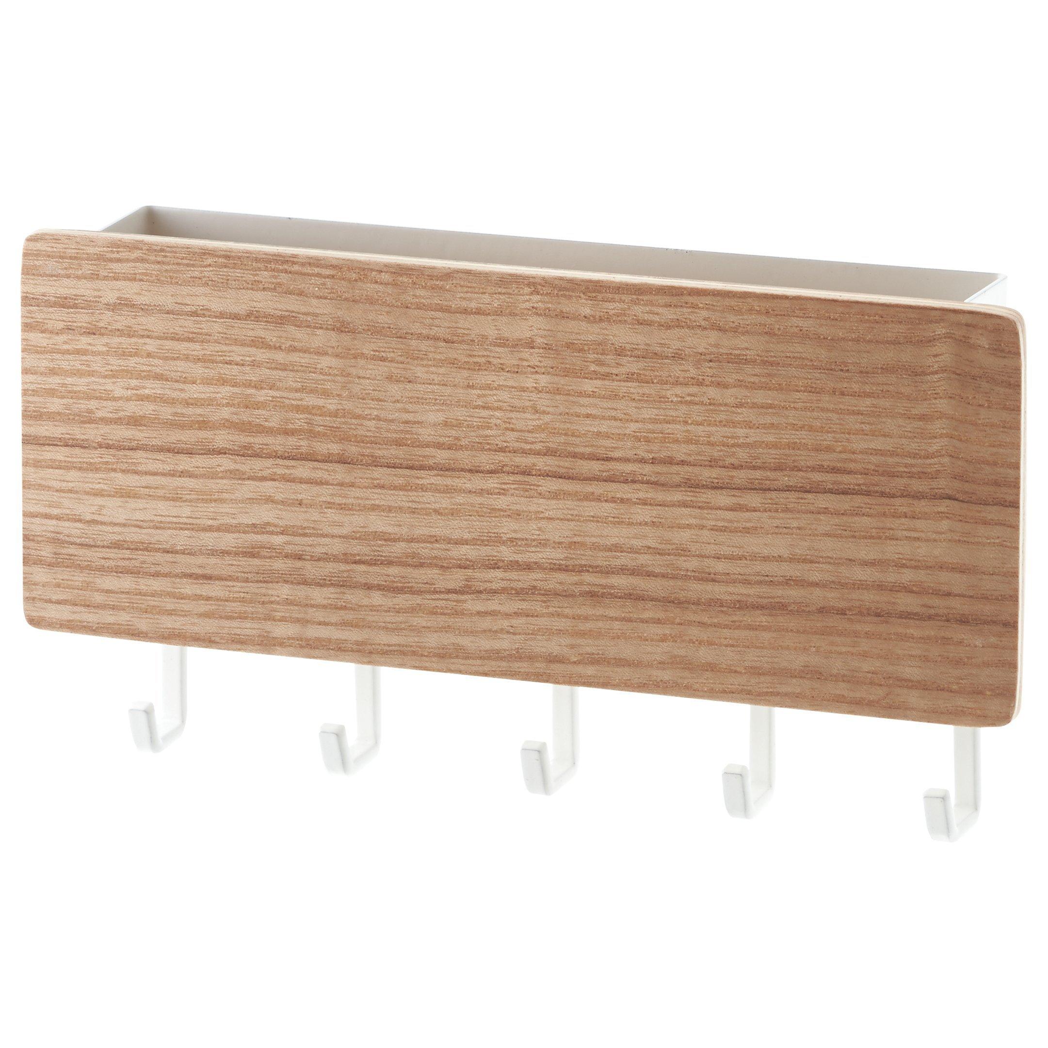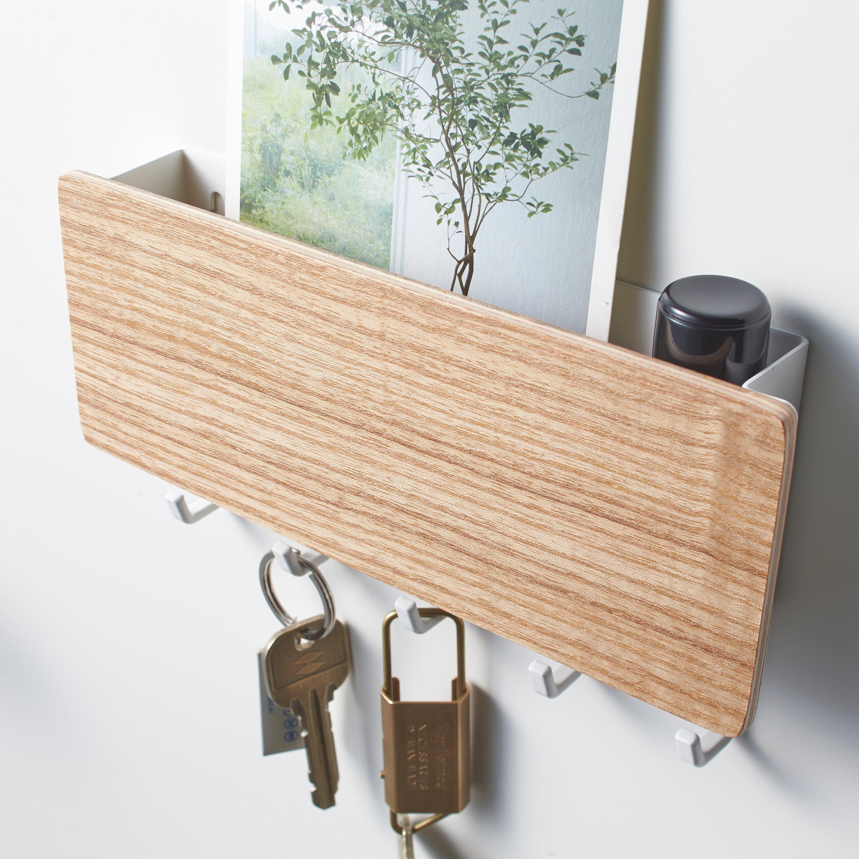 This lightweight wood and steel organiser has 5 hooks for keys, scarves or bags and an integrated cubby to keep your post tidy.