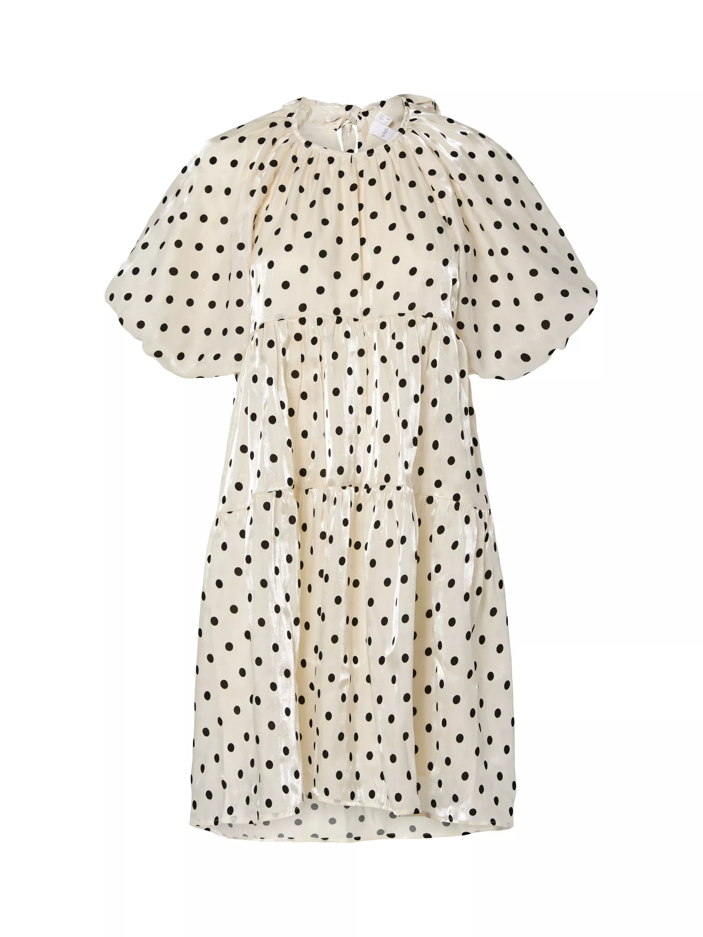 Cut to drop into a tiered silhouette, this thigh-grazing dress from YAS is made using a synthetic fabric. Topped with a crew neck and puff sleeves, this stye takes inspiration from vintage design with its polka print.