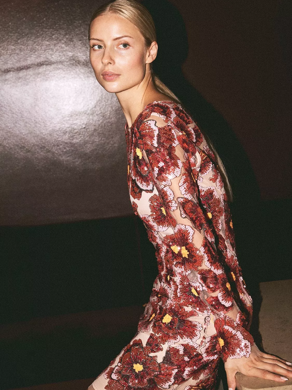 Step into the spotlight in this mini sheath dress from YAS. Covered in sparkling sequins with a lively floral pattern, it keeps you comfortable and ready for any invite. The round neck and long sleeves add an effortless polish.