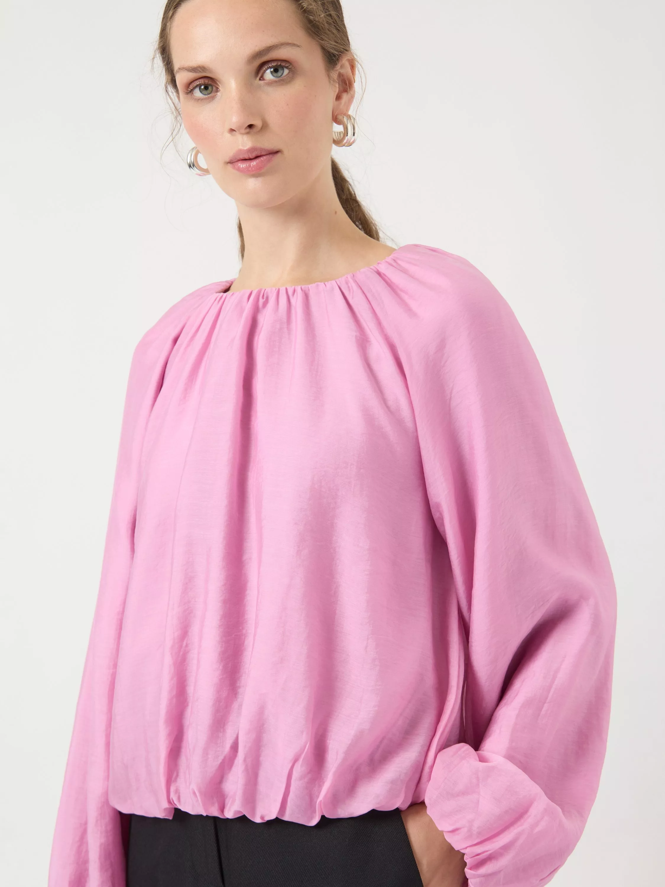 The long balloon sleeves add instant drama and contemporary shape, balanced by a neat crew neck and a plain, refined finish. A clever zip fastening keeps the front clean and confident.
