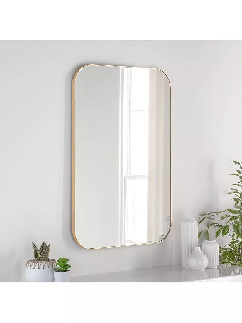 Wood frame wall mirror with curved corners, beautifully handcrafted in the UK. The minimal sleek edge creates an understated frame, hand-finished with a painted colour.