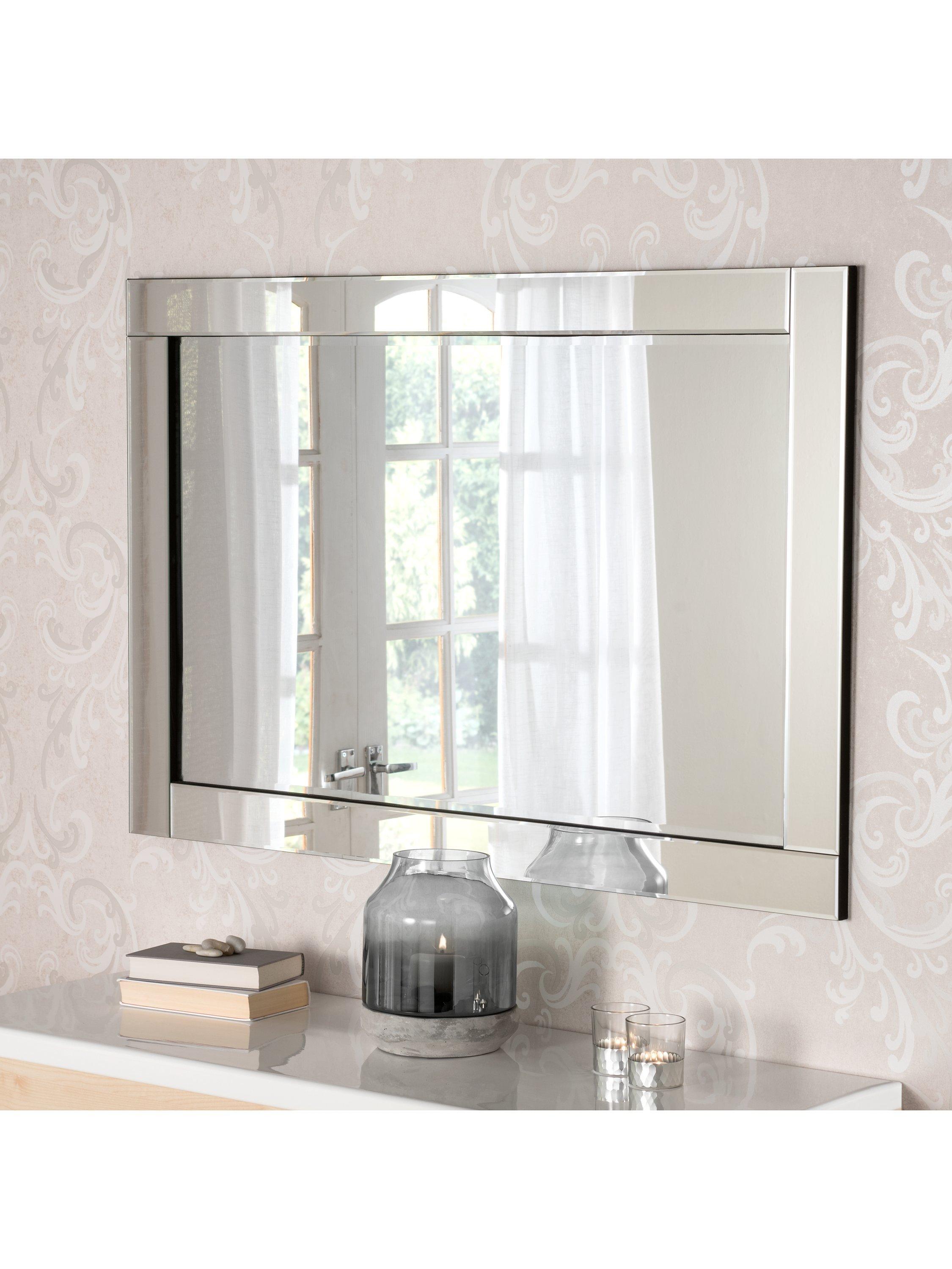 YearnBevelled Glass Rectangular Frame Wall Mirror, 90 x 60cm, Clear/Black