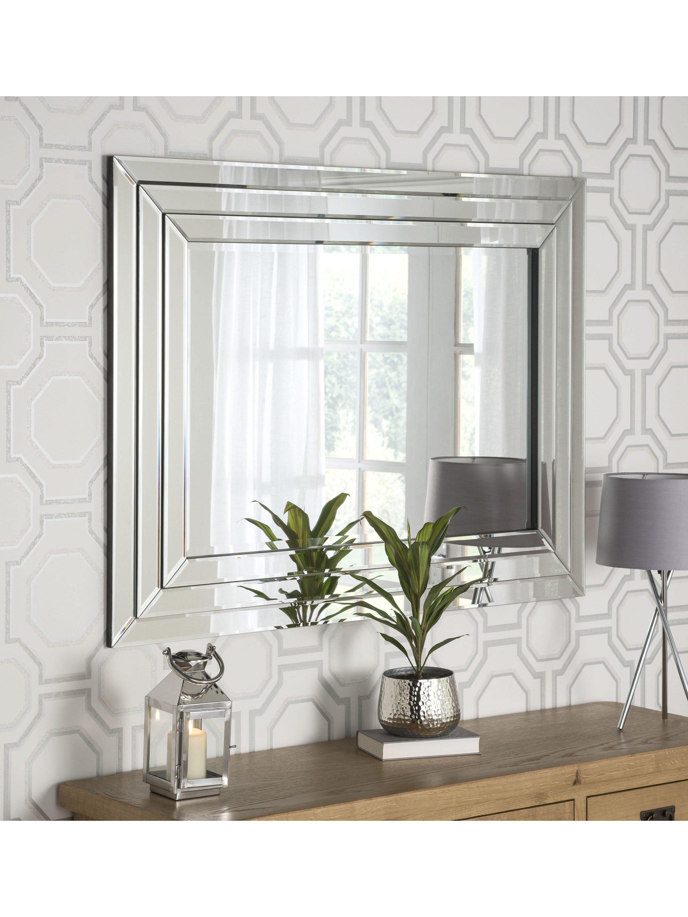 With its crisp clean lines and smart bevelled edges this 3D-frame wall mirror is perfect for bridging wide gaps between living room or bedroom windows. Alternatively, leave it in the bedroom and hang it vertically on a wall as a contemporary dressing mirror.