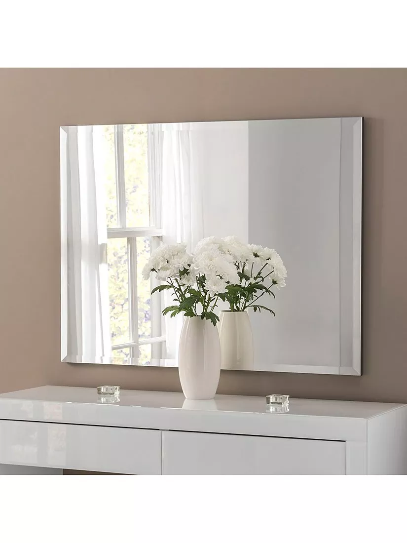 With its subtly bevelled, mirrored edges, this beautiful frameless-looking mirror has a graceful simplicity and fluid look which would blend seamlessly into any design scheme. This elegant, fuss-free style comes finished with a delicate silver edge. Wall hang vertically or horizontally.