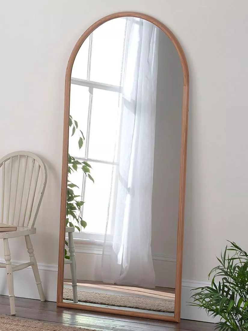 YearnKimpton Solid Oak Wood Arched Frame Full-Length Wall/Leaner Mirror, 180 x 80cm, Natural