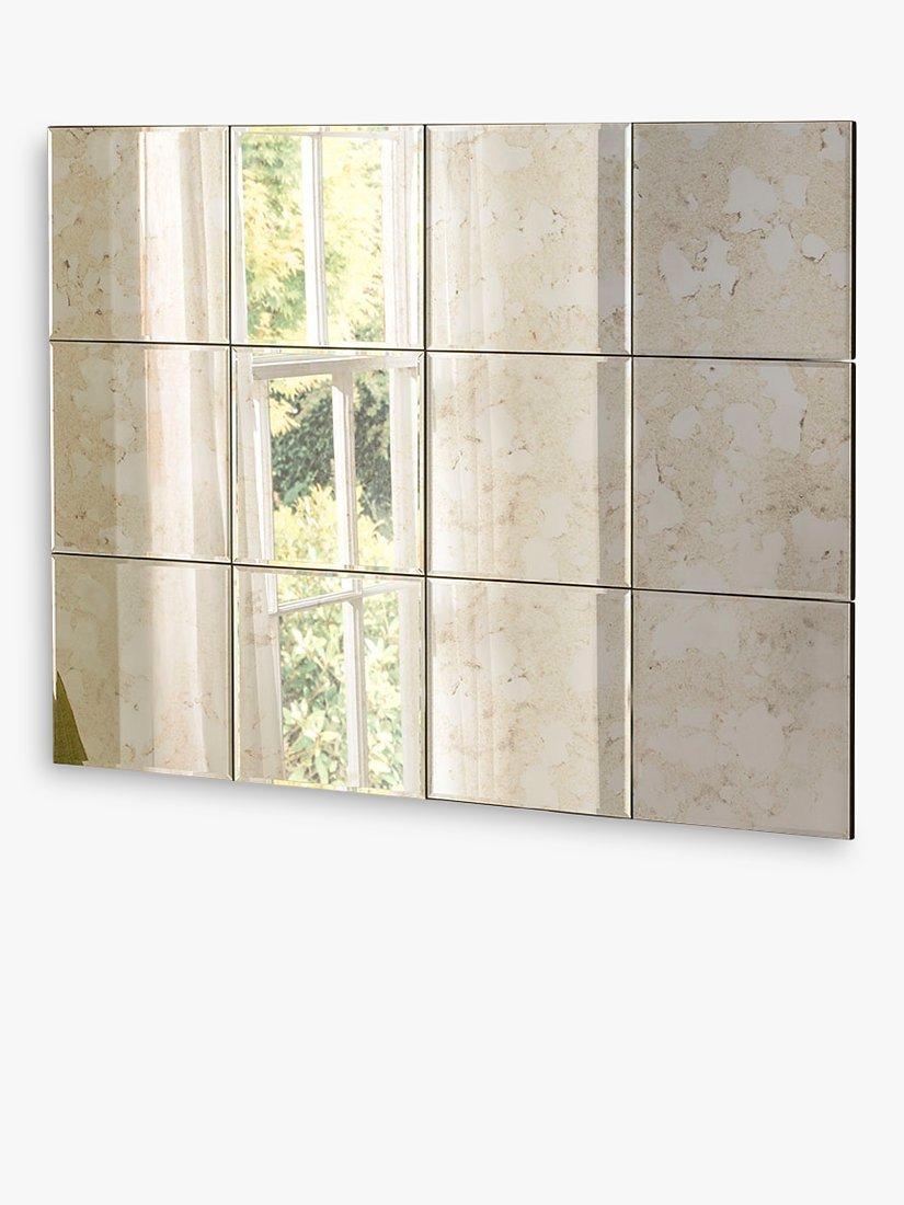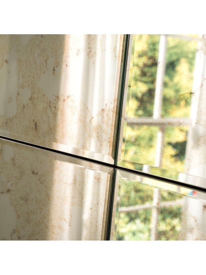 A statement piece for any room, this stunning antiqued mottled glass mirror just cries out to be noticed. The sumptuous panelling has a slight gold tint pattern with distressed shading. Great for a contemporary or ultra-chic setting. The bevelled glass and striking black border around the frame add a three-dimensional look. A piece of wall art in its own right, show it off in a sitting room or an entrance hallway, vertically or horizontally.