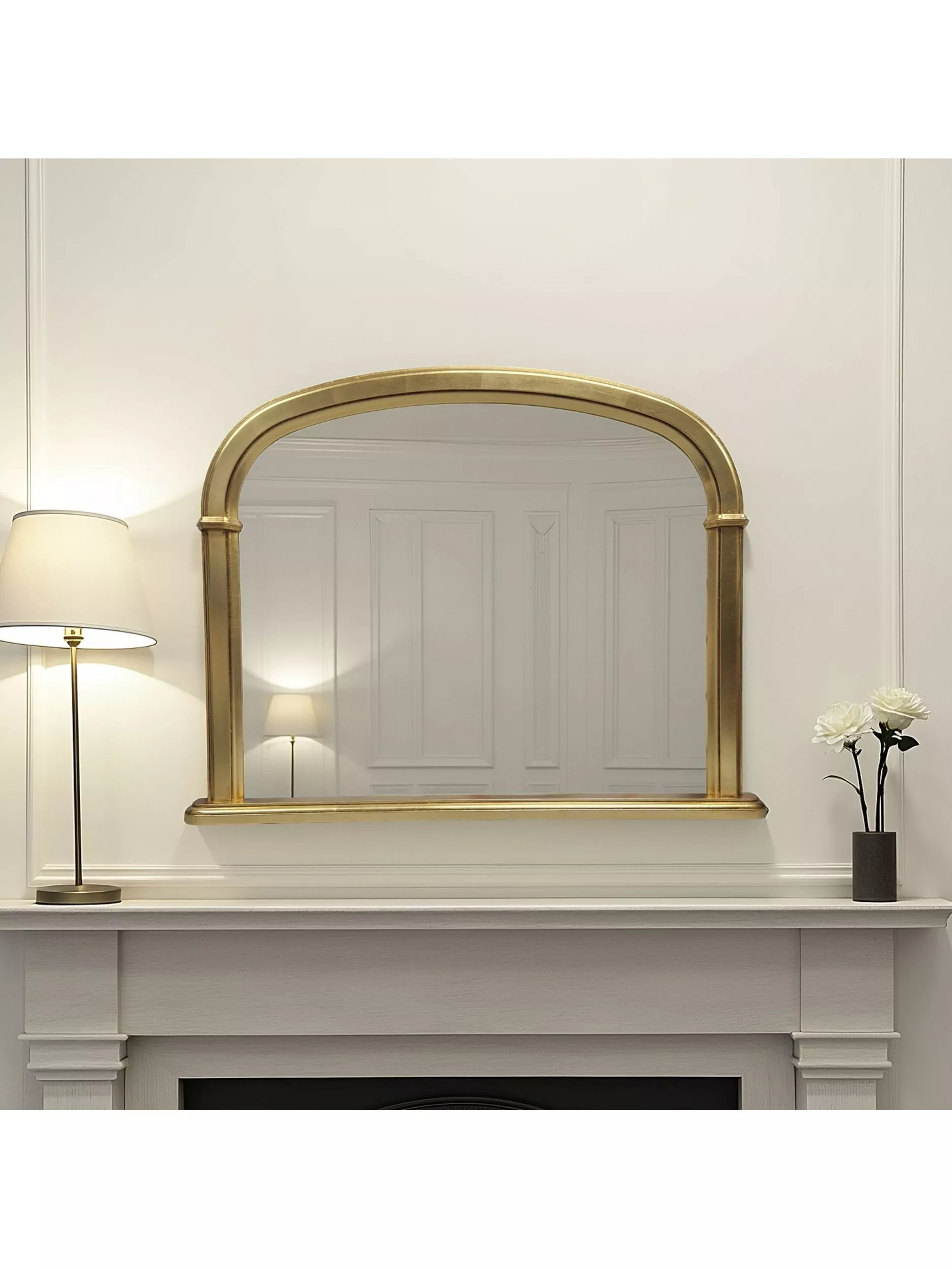 Featuring intricate Georgian-inspired details, this refined arched overmantel mirror adds a touch of elegance to any space. Made in the UK, this exquisite piece serves not only as a functional wall mirror but also as a captivating focal point, ideal for entryways, living rooms, or bedrooms.