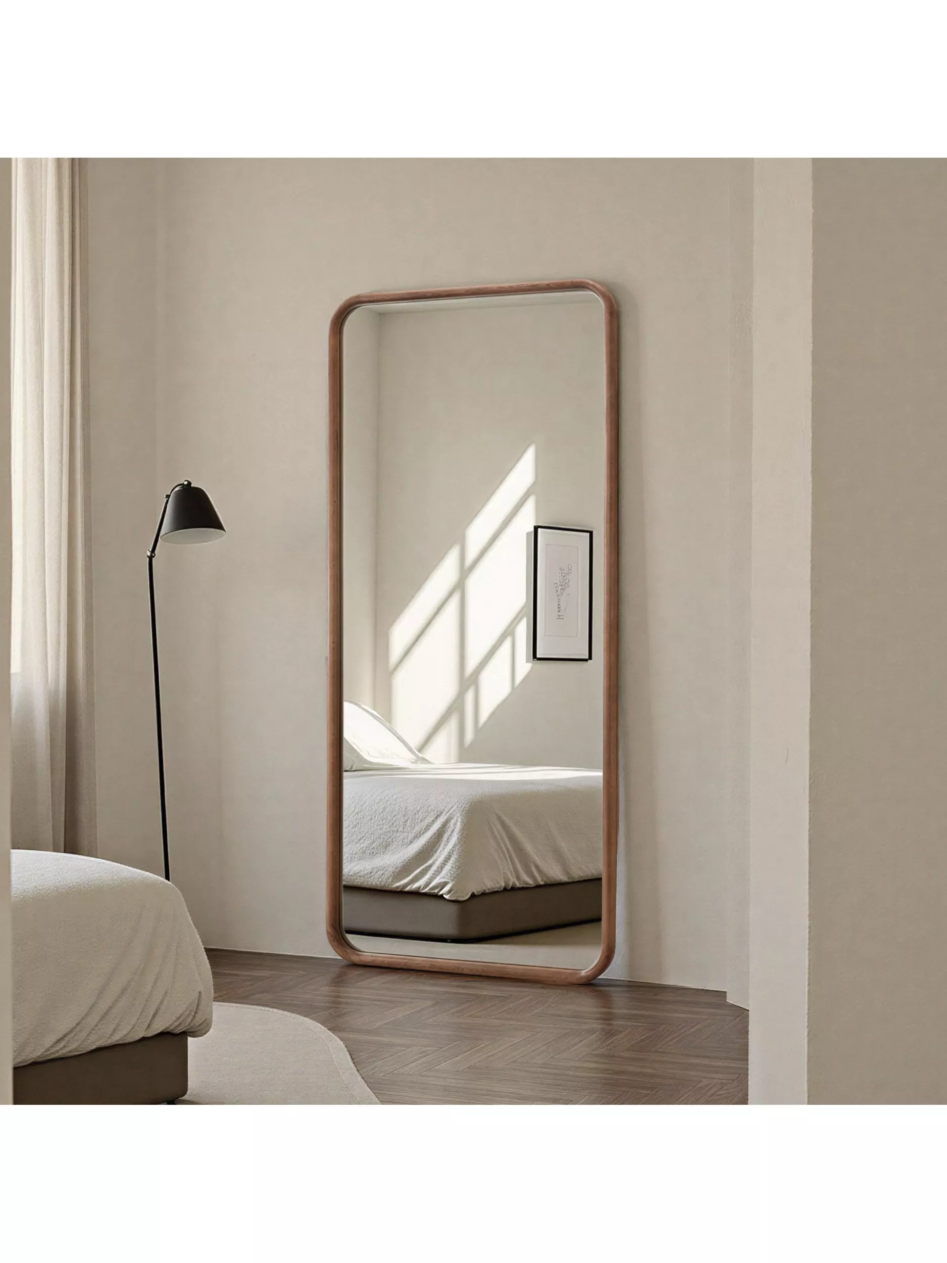 Large full-length solid oak wood-framed wall mirror with a rounded profile. The frame features a warm walnut finish with a lacquer that protects the wood while allowing the beauty of the wood grain to shine through.