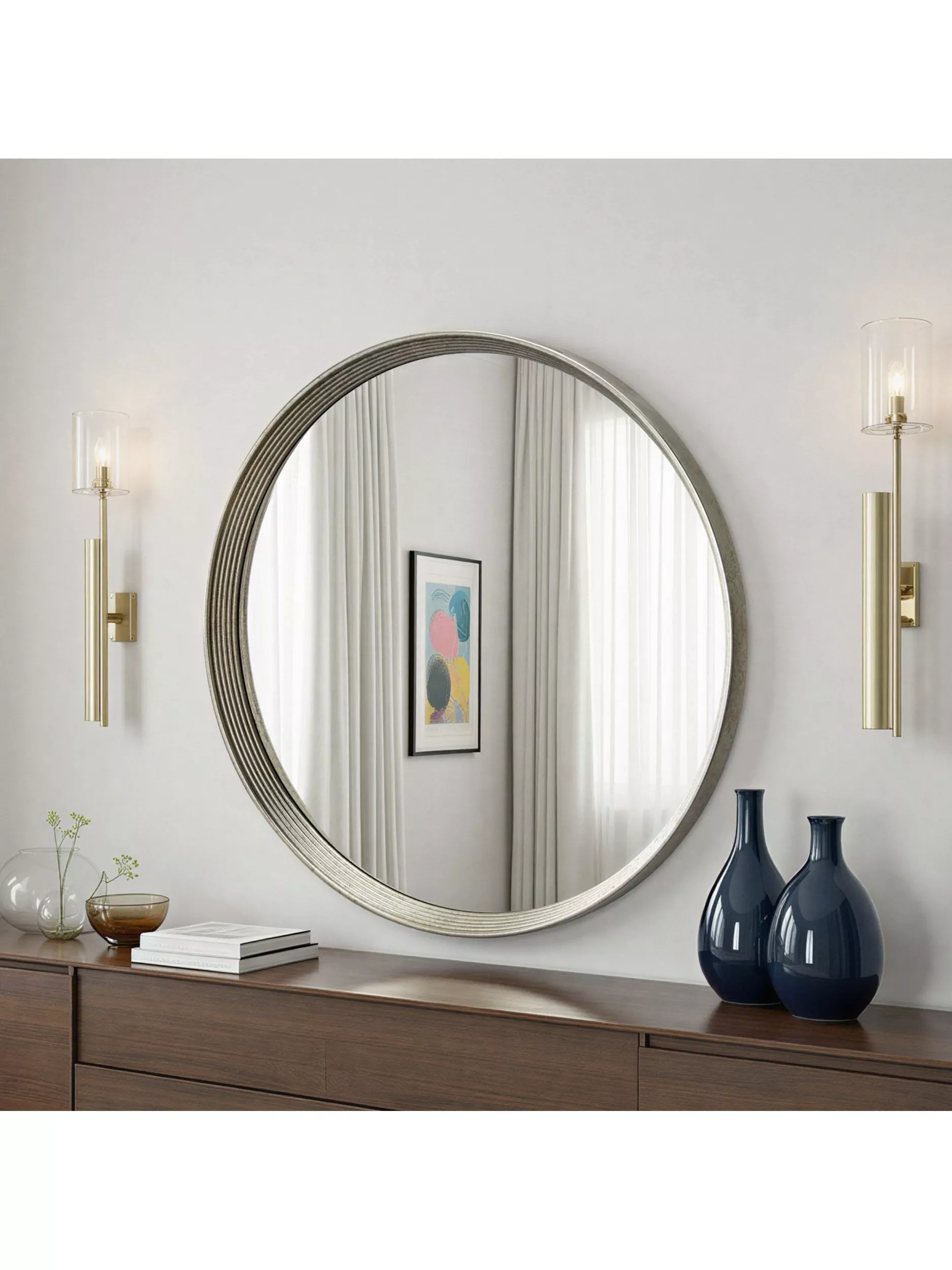 YearnWillow Round Wall Mirror, 107cm, Silver