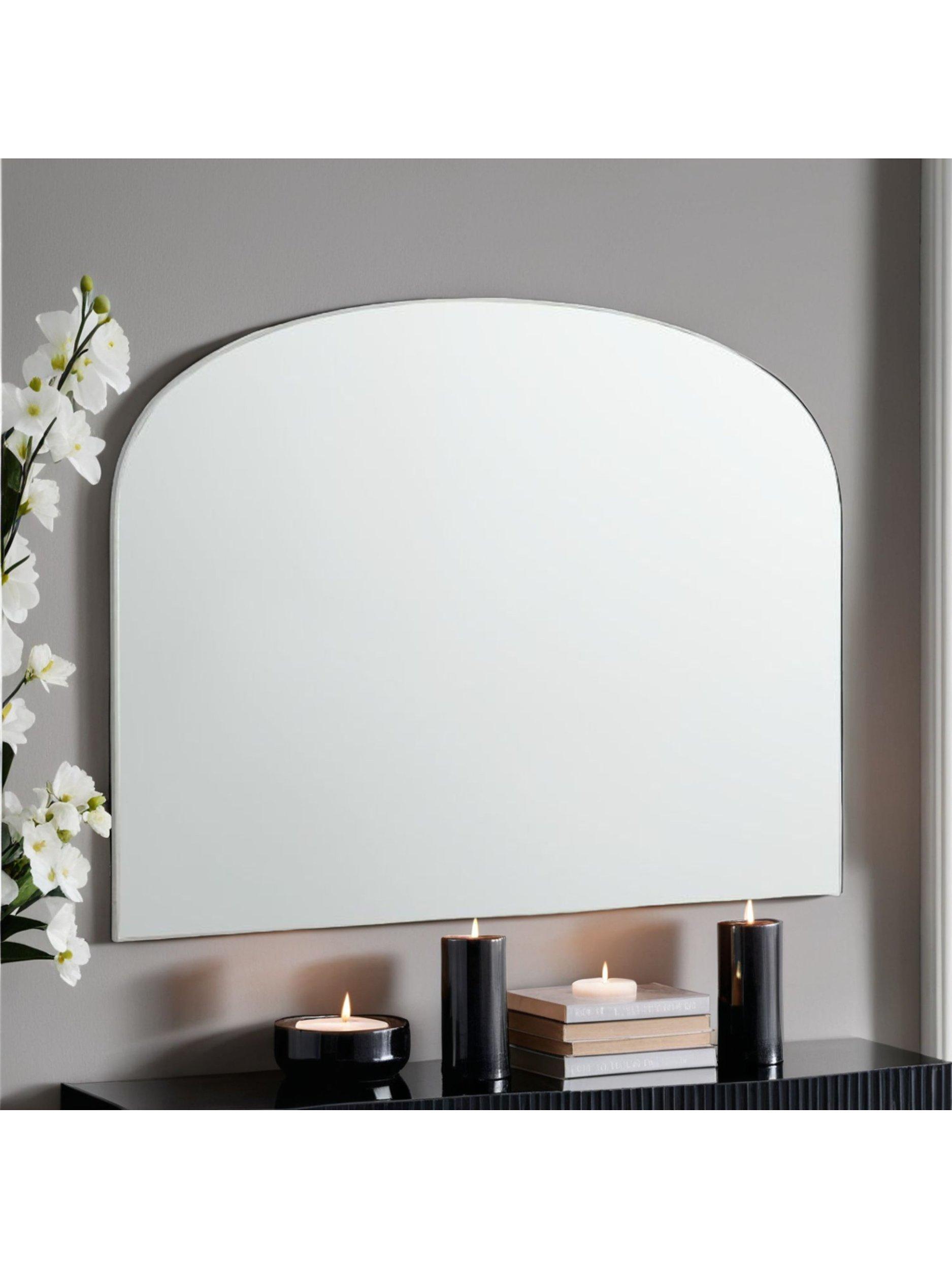 A slim-profile overmantel mirror with a wooden frame in a choice of metallic and matt finishes. The curved top particularly suits wall-mounting above a mantle.