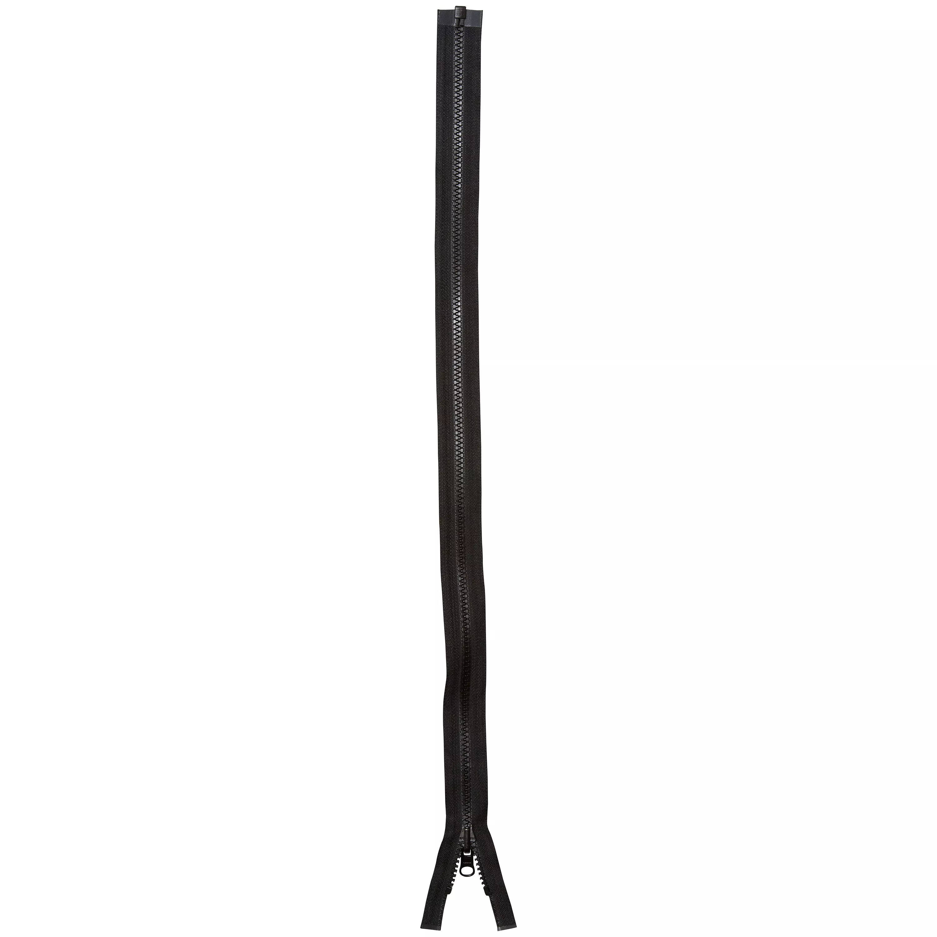 An open end medium weight moulded tooth zip with a reversible slider for jackets and any reversible garment.