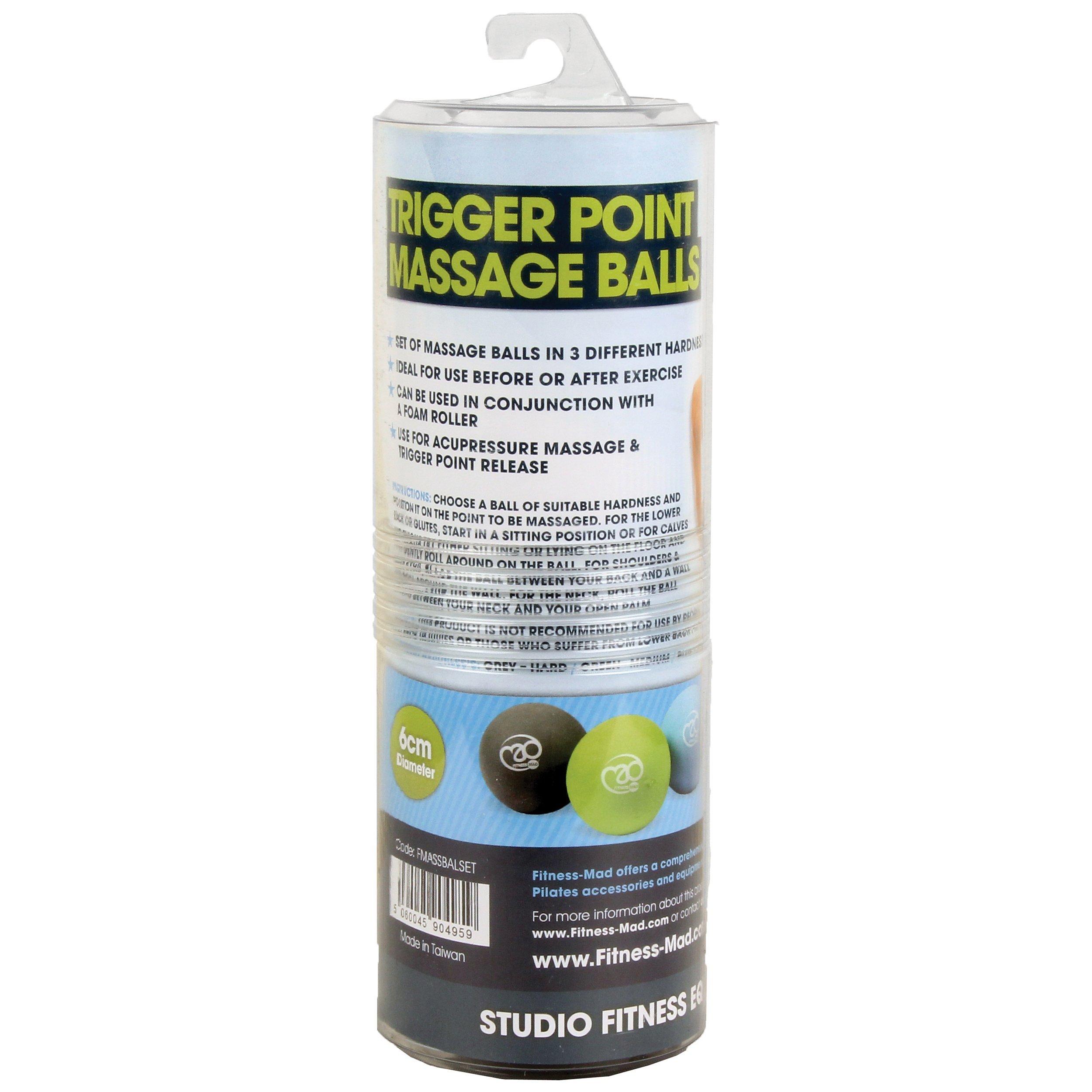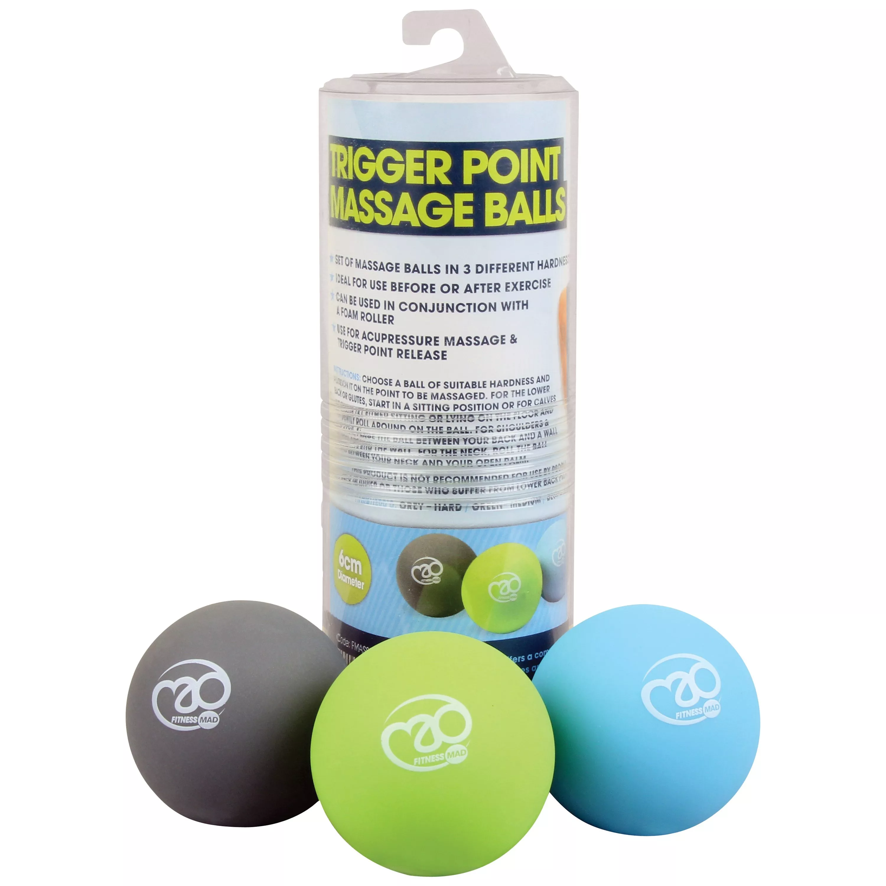 Use the Trigger Point Massage Ball Set from Yoga Mad for 3 different hardness levels to focus on acupressure massage and trigger point release.