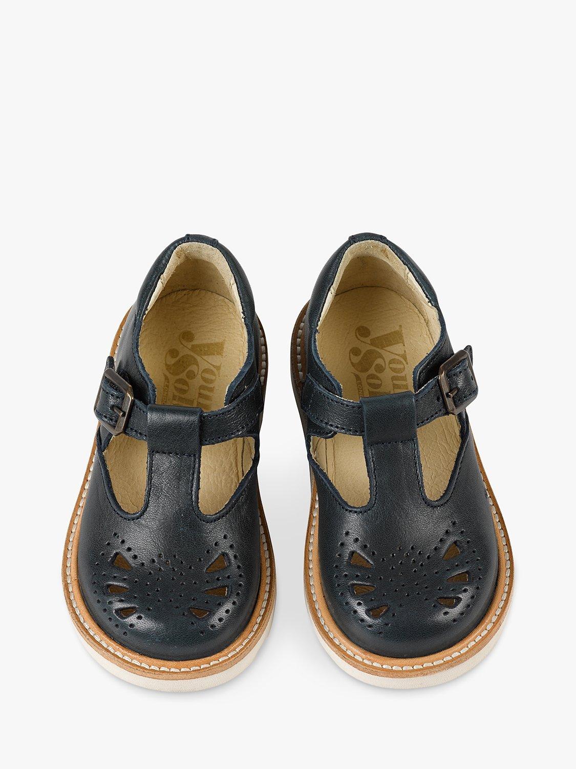 Young SolesKids' Rosie T-Bar Leather Shoes, Navy