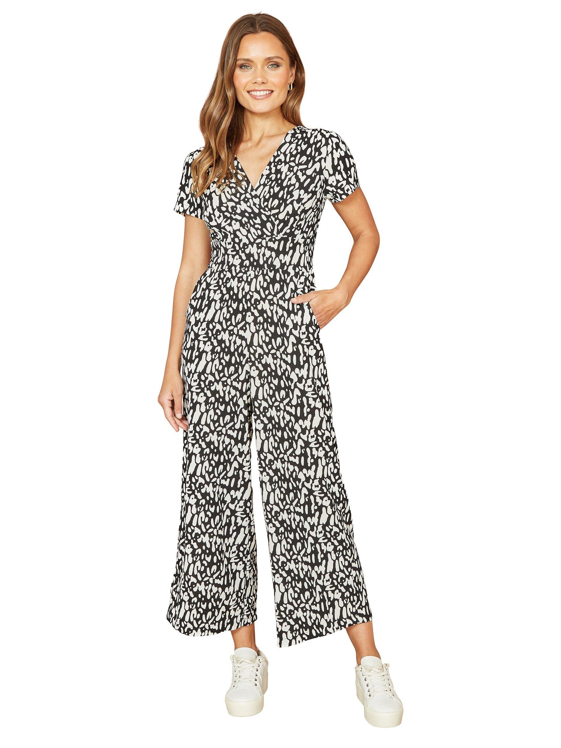 YumiAbstract Wrap Stretch Jumpsuit, Black