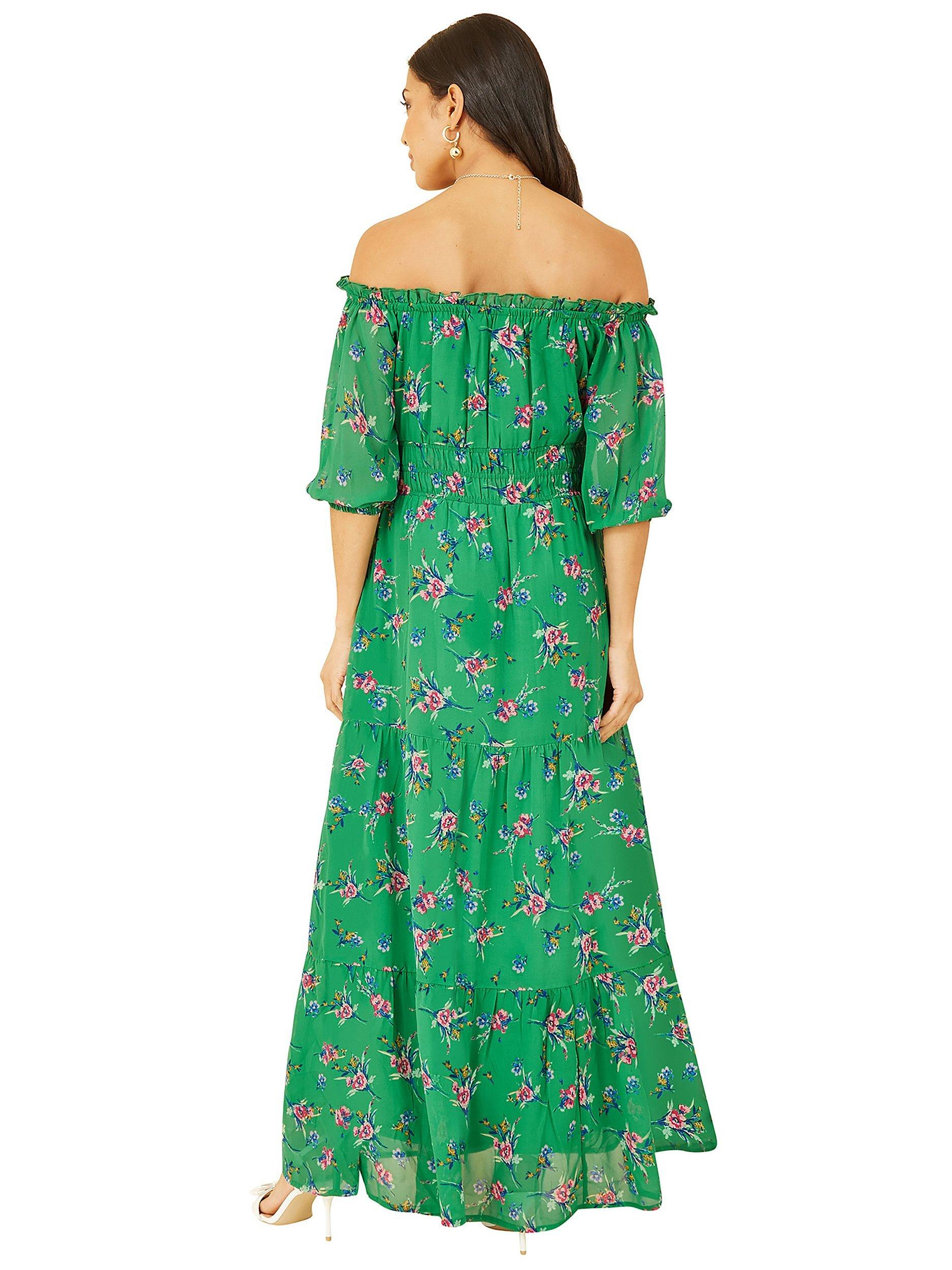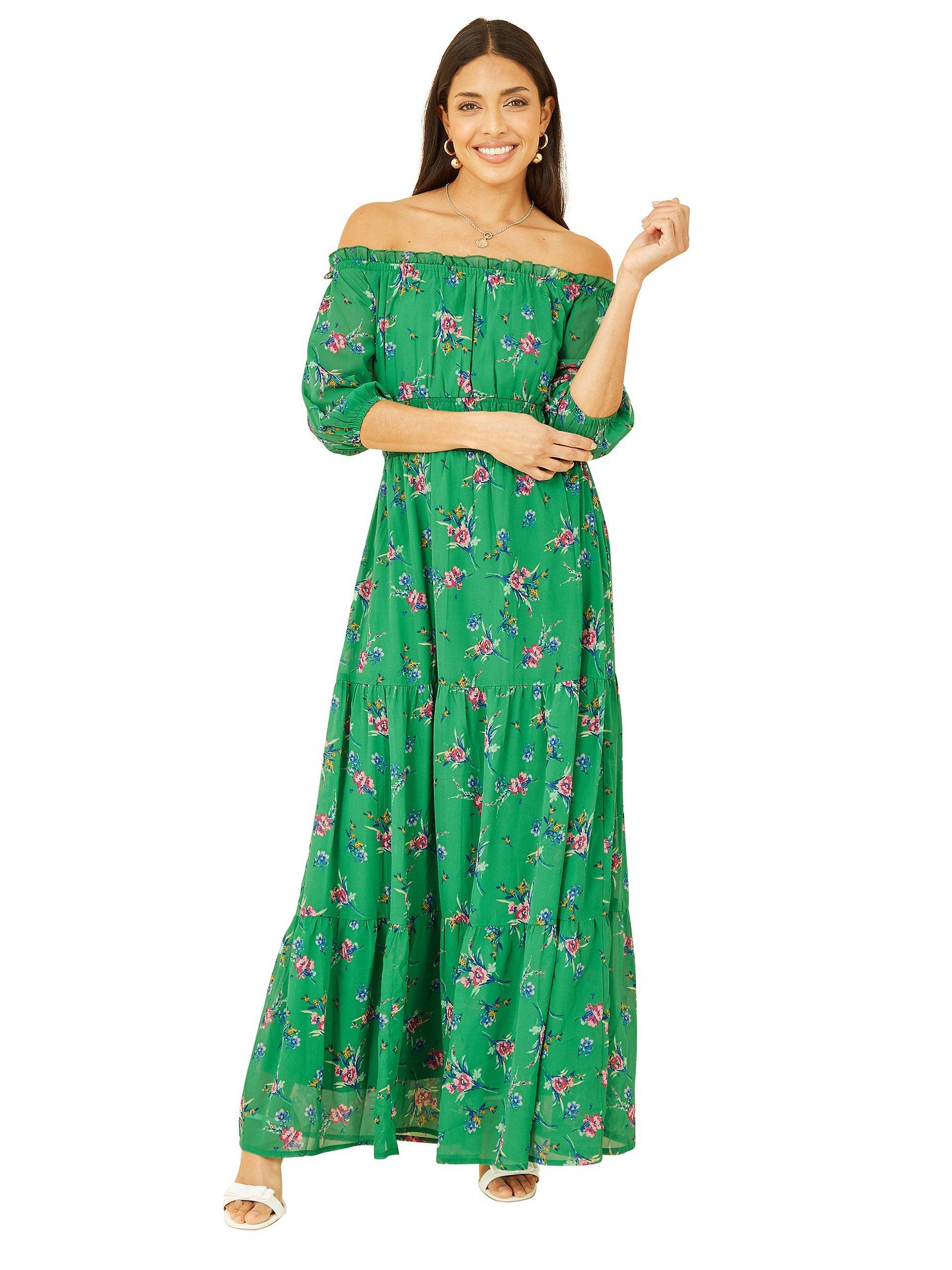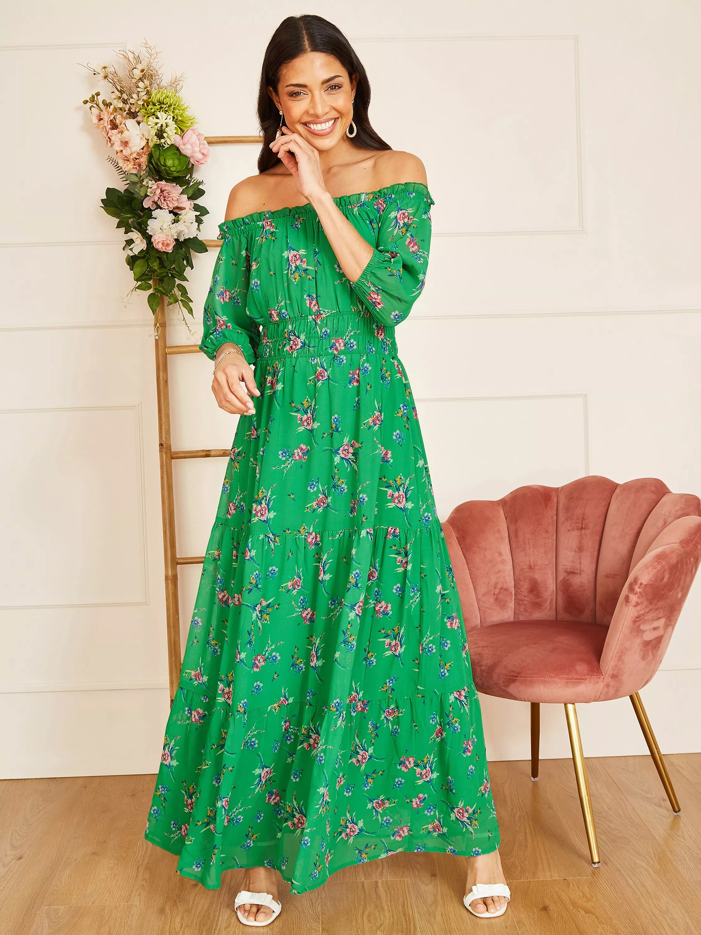 Tiered throughout for a fluid silhouette, this floor-length dress from Yumi comes in a fabric that's built to last. With an off-the-shoulder neckline and three quarter length sleeves, it guarantees that if floral prints are your thing, you'll love this.
