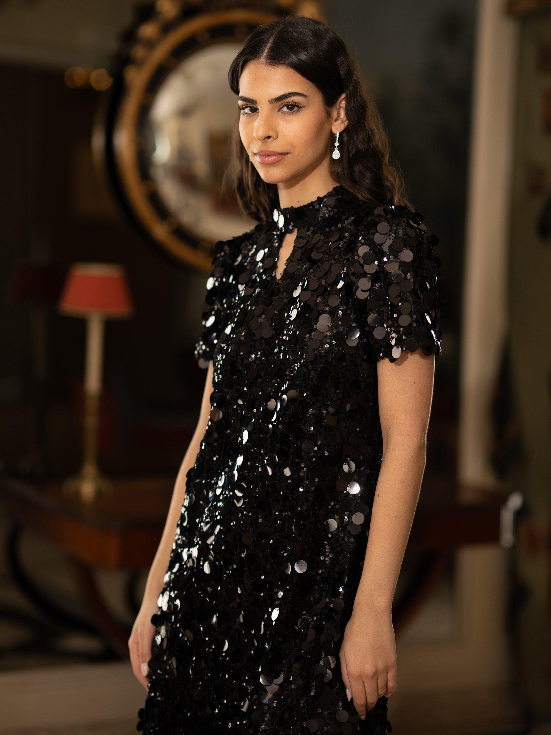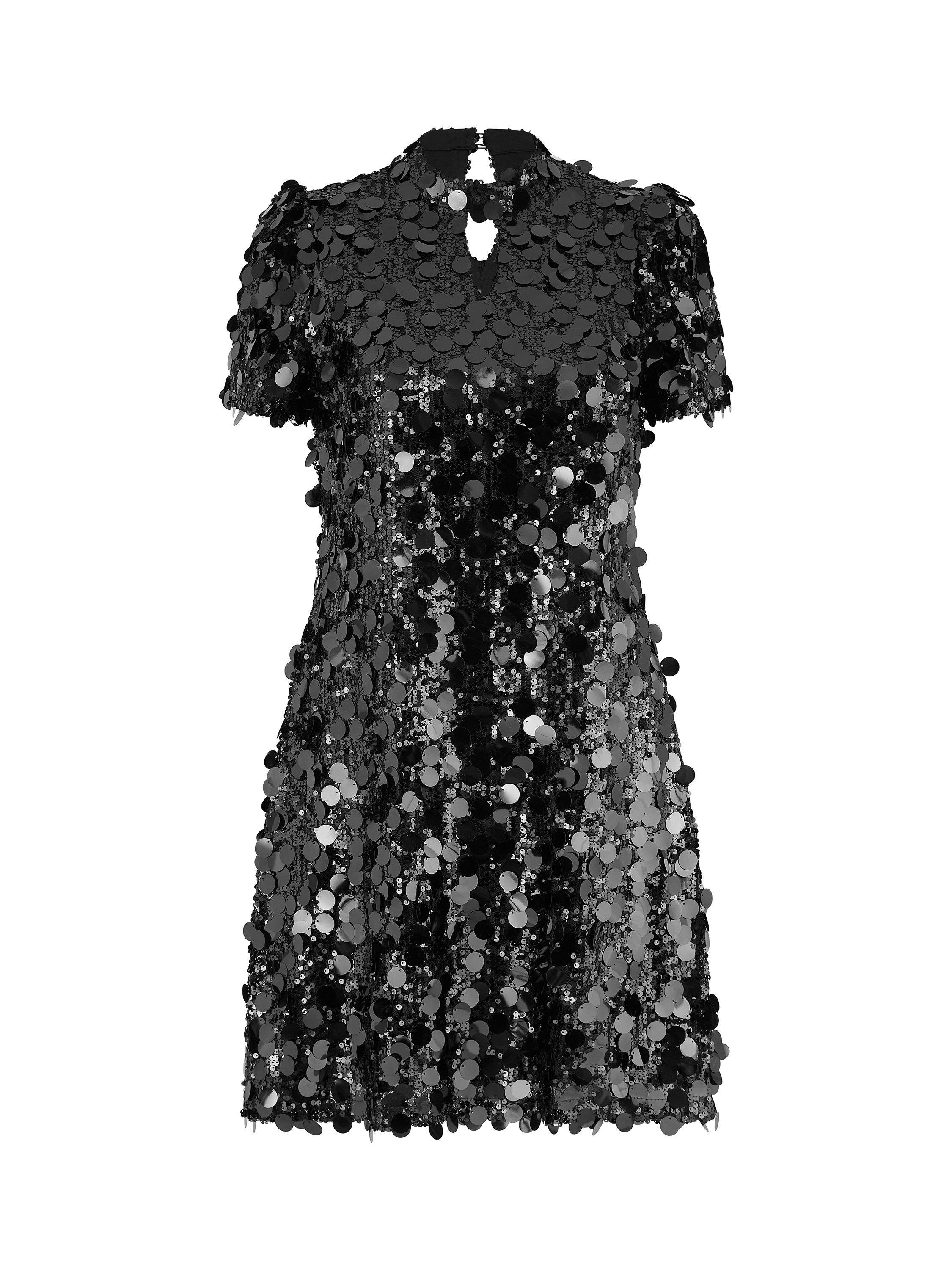 Party perfection in this mini tunic dress from Yumi. Covered in dazzling oversized sequins, this is an absolute slay. With a short sleeve, easy shape and keyhole neckline, with adore this for any Christmas party for a show stealing look.
