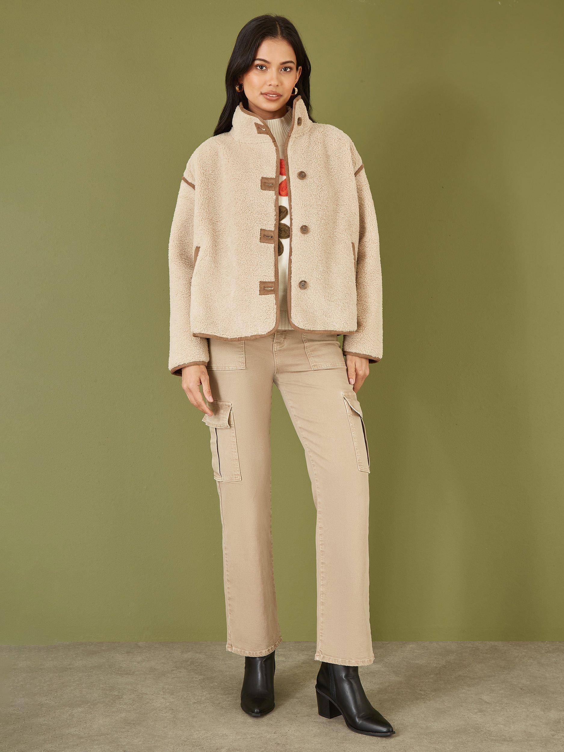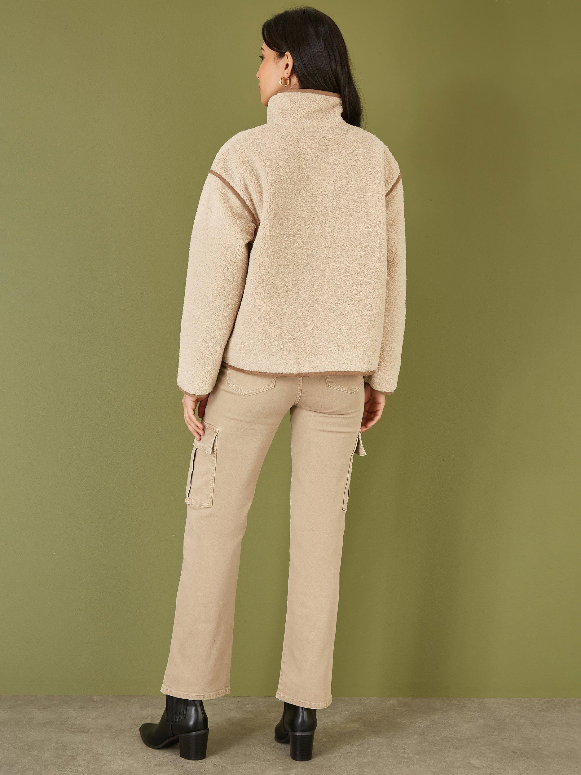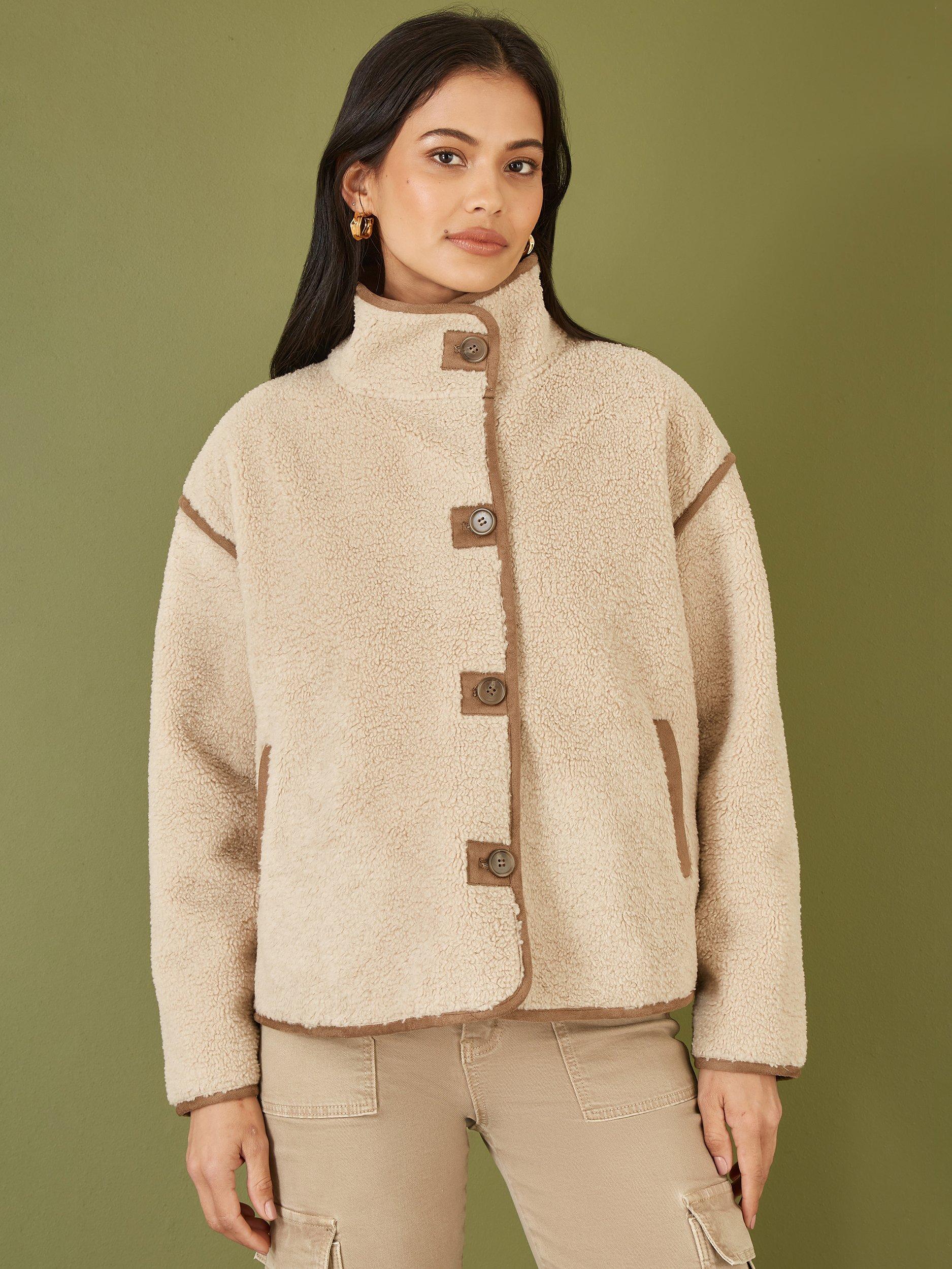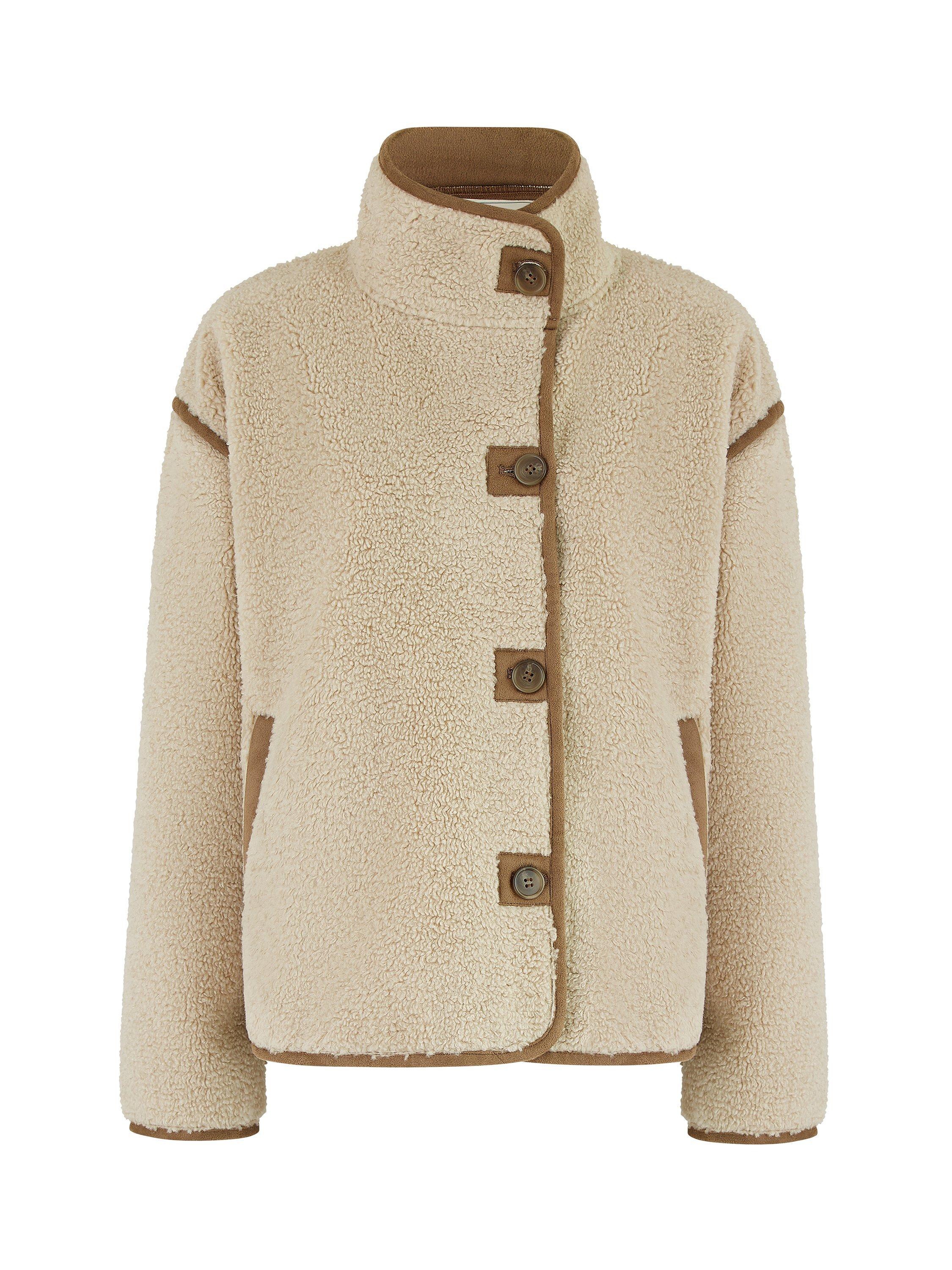 This borg jacket is perfect to complete any cosy fit this season. With faux leather trims to add some extra style points, this high neck design looks great styled casually with denim and knitwear. The relaxed fit and pockets add a practical edge.