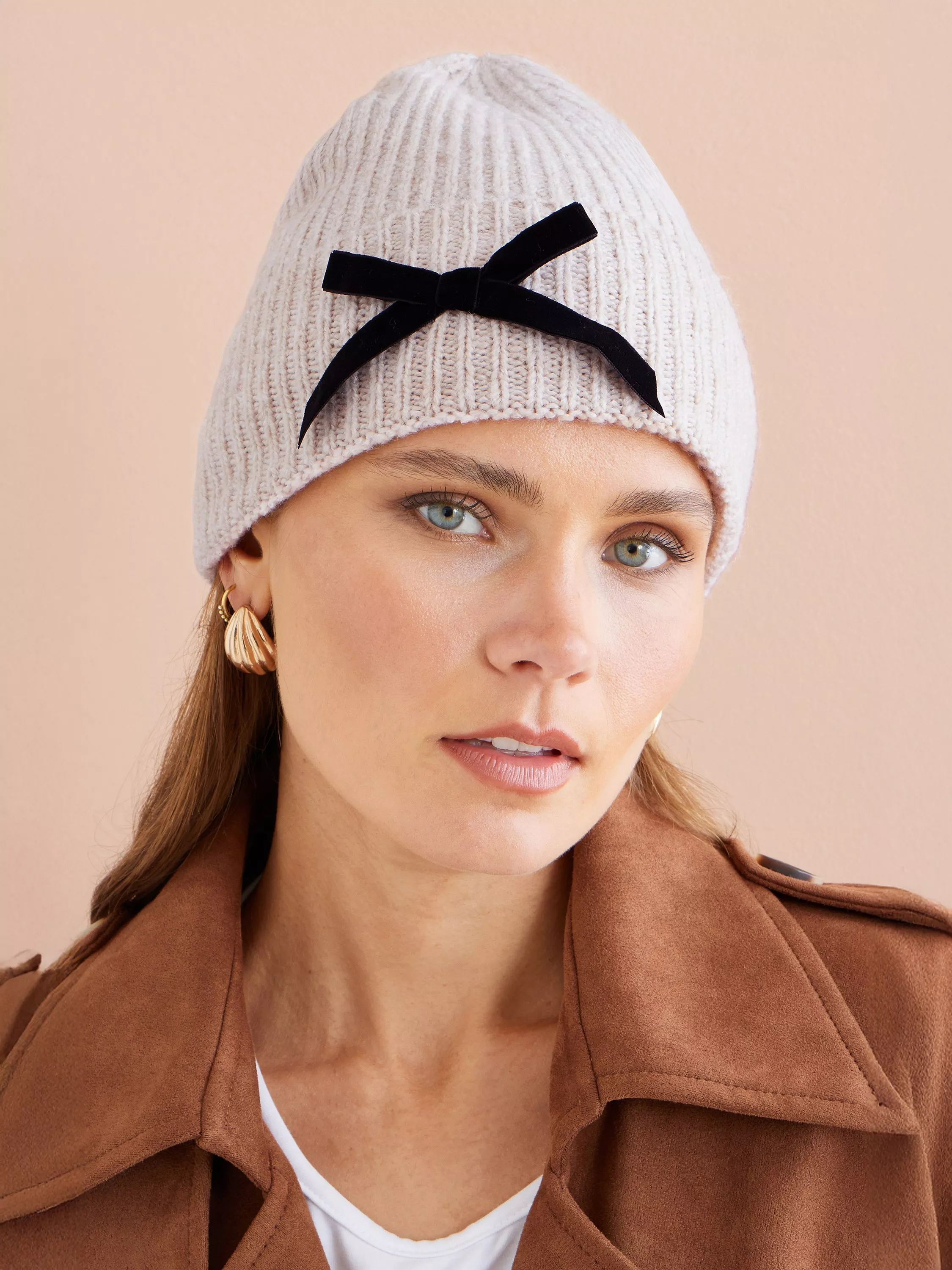 YumiBow Knit Beanie Hat, Oatmeal