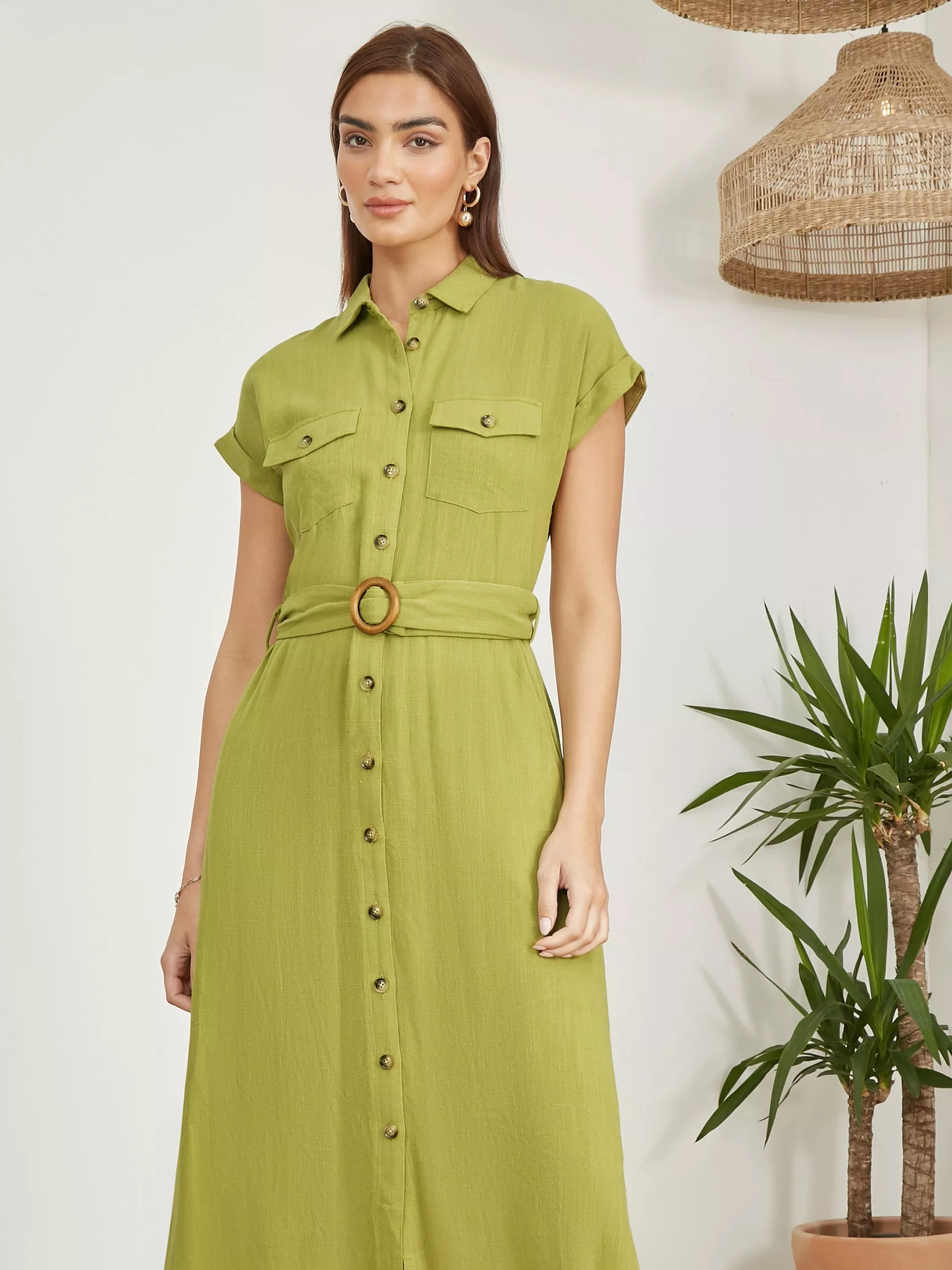 A wardrobe staple that's as versatile as your social calendar, this mid-length dress from Yumi is dreamt up from whisper-weight viscose and comes with a matching belt. Featuring a collar neckline and short sleeves, this style is minimally detailed for endless wearability.