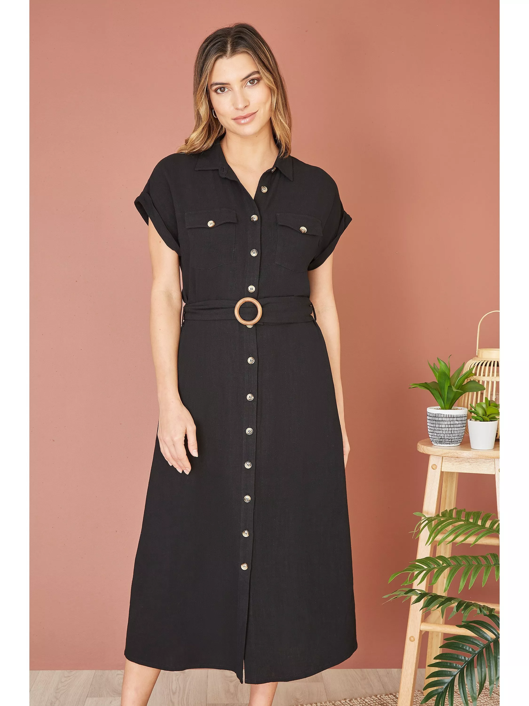 A wardrobe staple that's as versatile as your social calendar, this mid-length dress from Yumi is dreamt up from whisper-weight viscose and comes with a matching belt. Featuring a collar neckline and short sleeves, this style is minimally detailed for endless wearability.