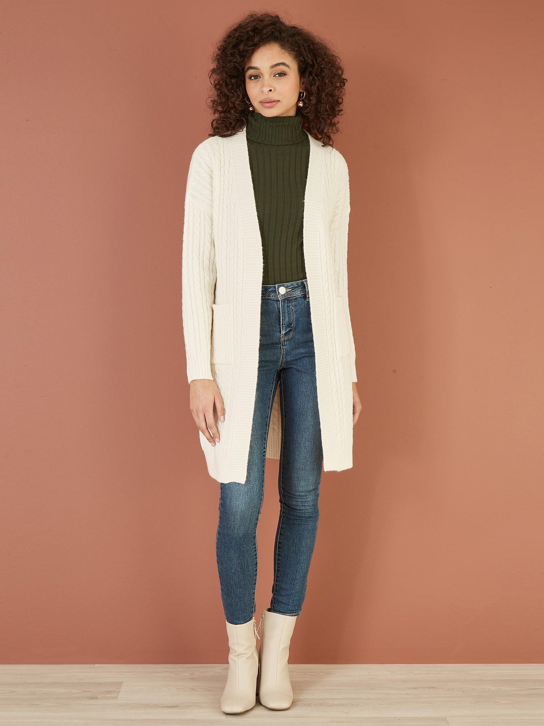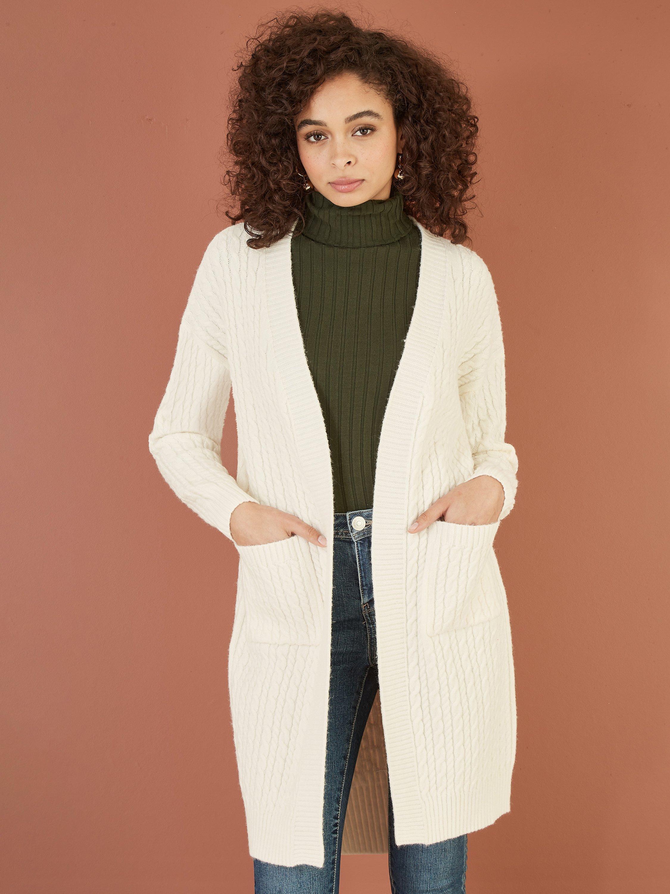 In the softest of knits, with a cable design throughout - this edge to edge cardigan from Yumi will be your go to for cosying up in the cooler weather. The relaxed fit, soft colour and added feature of pockets mean it's perfect for everyday.
