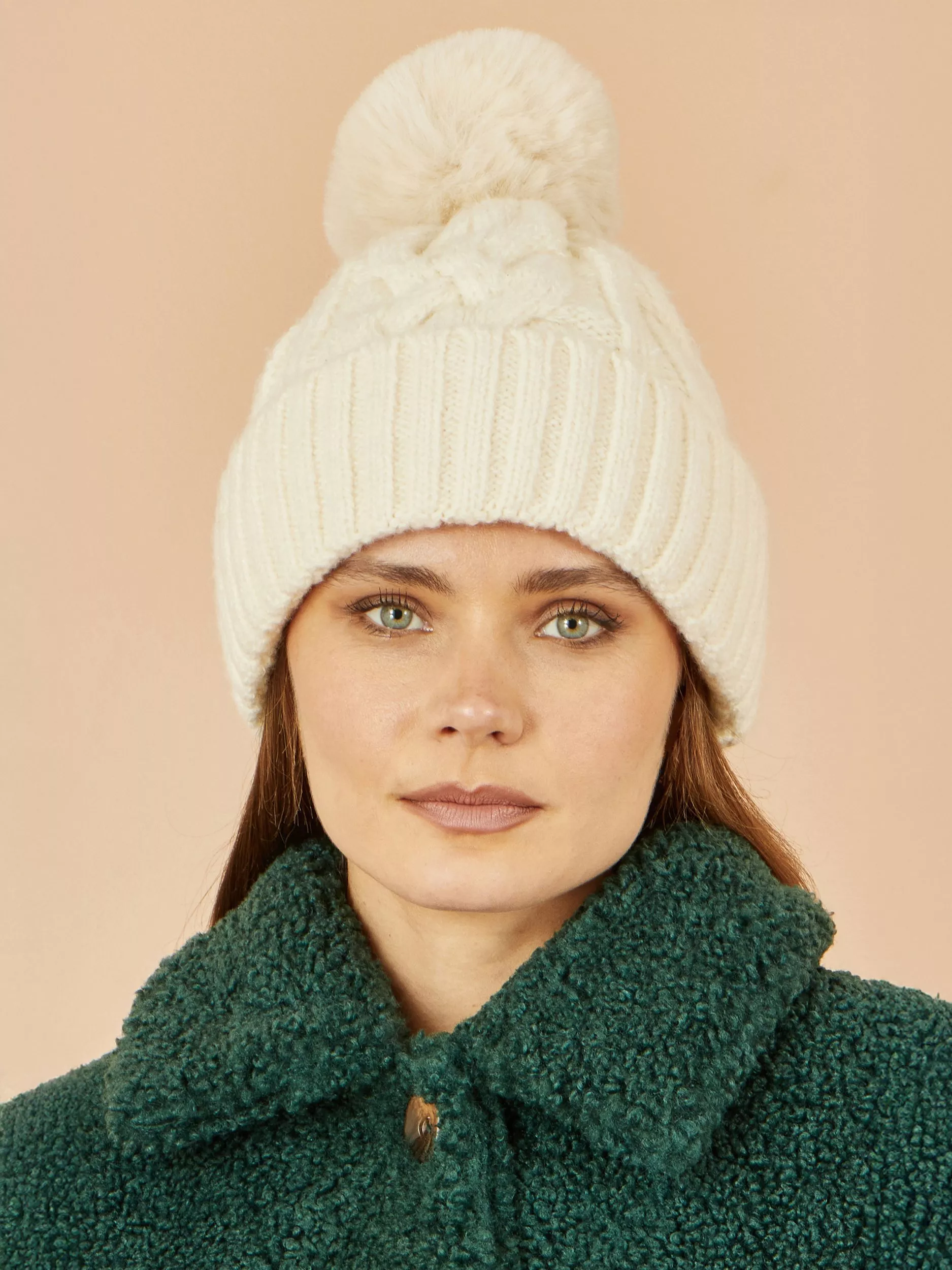 YumiCable Knit Pom-Pom Hat, White
