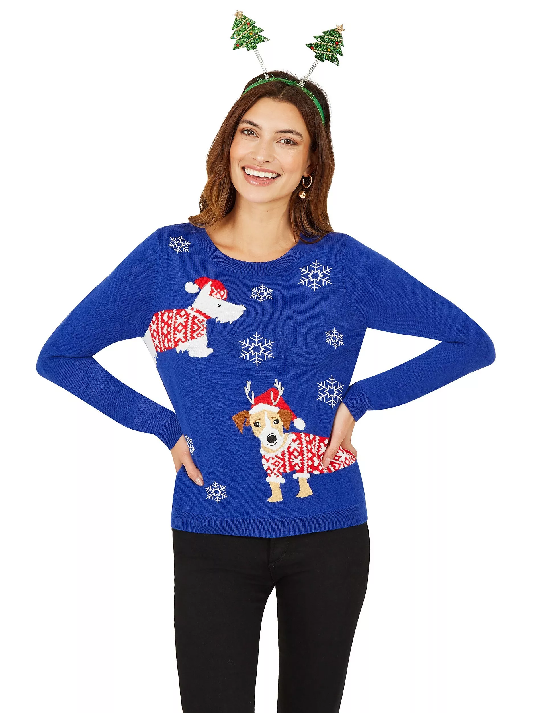 YumiChristmas Dog Knitted Jumper, Blue/Multi