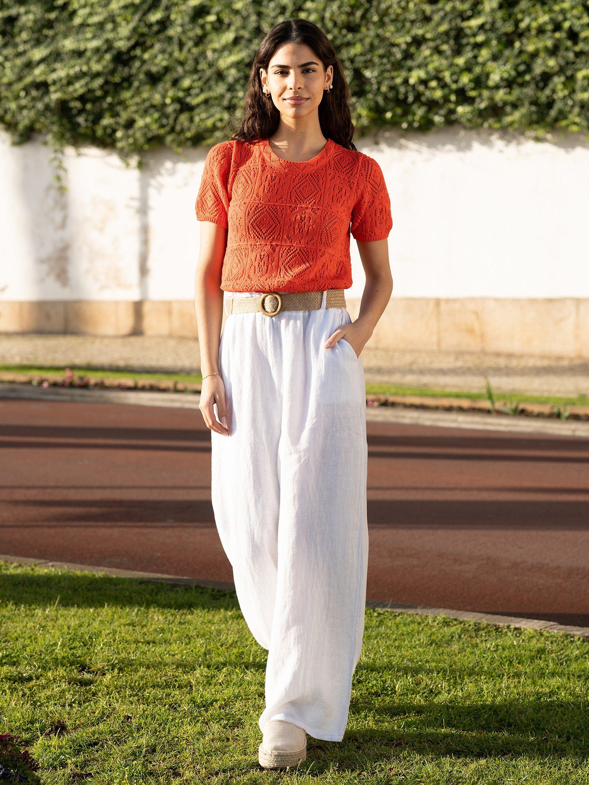 Cut with a simple round neck and short sleeves, it's made from soft cotton and slips on well with tonal denim ready for the summer.