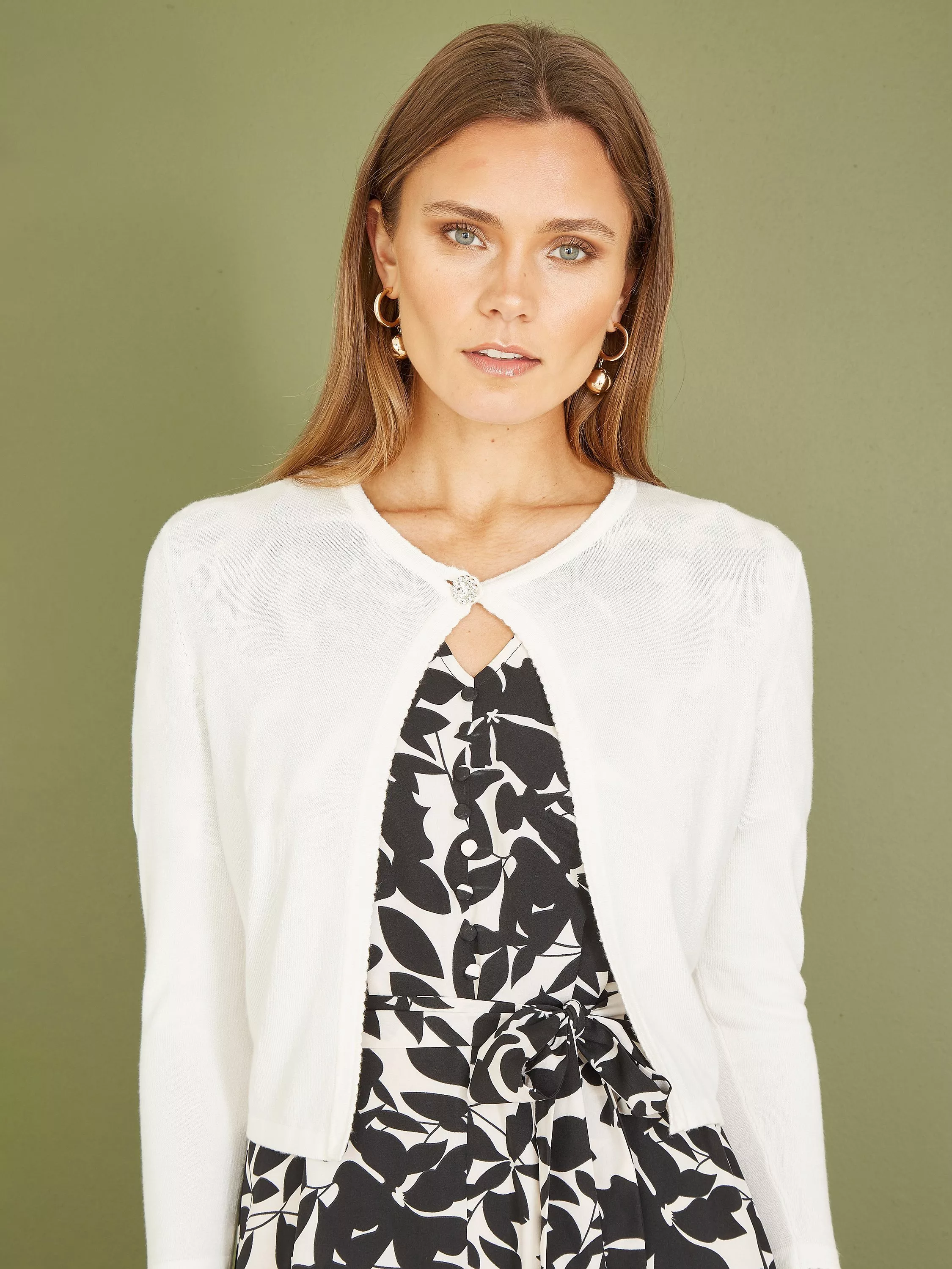 With a buttoned neckline, this cardigan by Yumi is made with smooth, blended fabric for light and comfortable wear.