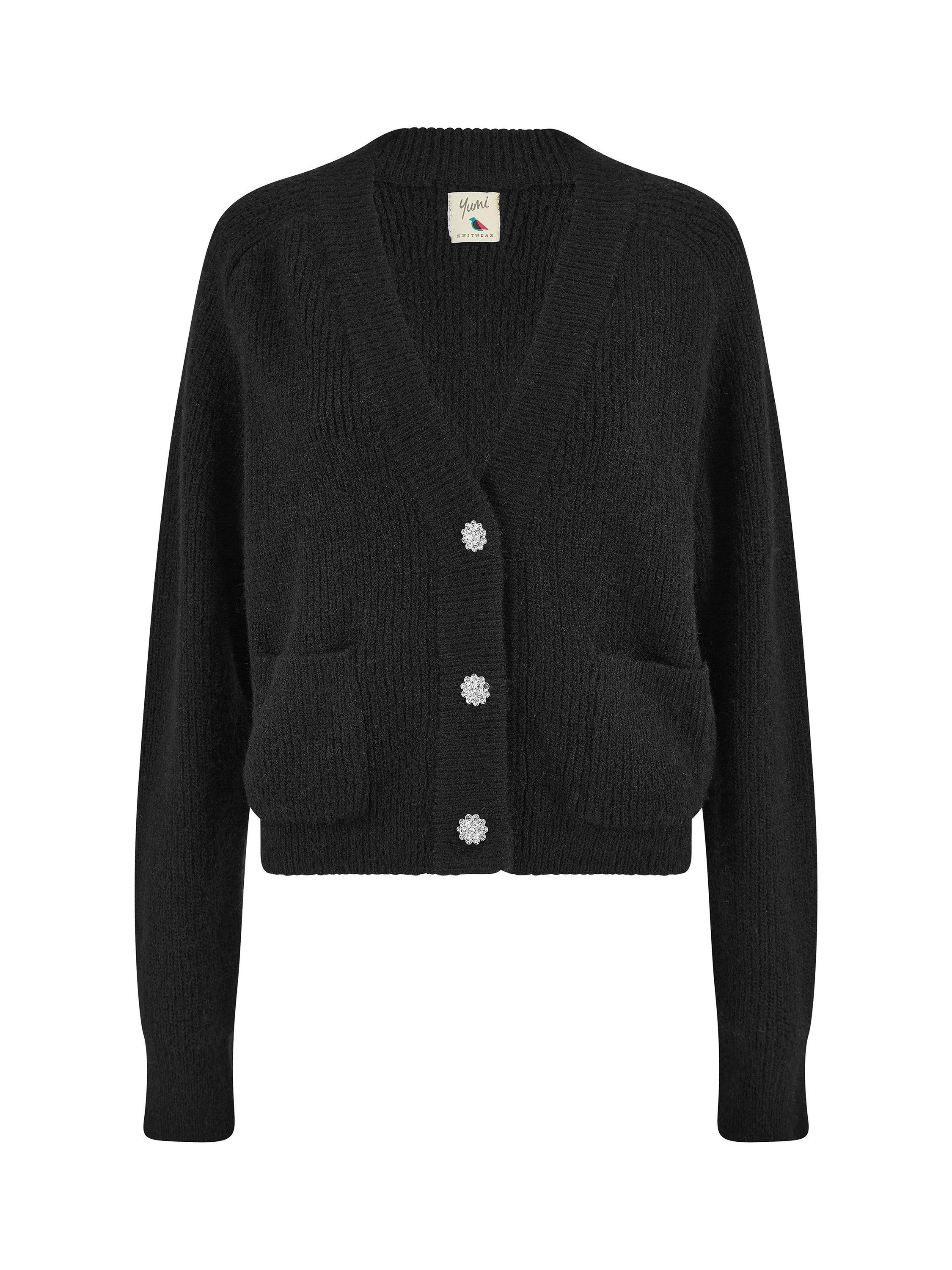 Cosy up this winter season in this perfect for everyday knitwear. The easy design with V neckline and daisy detail button. We added pockets on the front for added convenience. Wear this over your roll neck tops with jeans and trainers for the changing seasons.