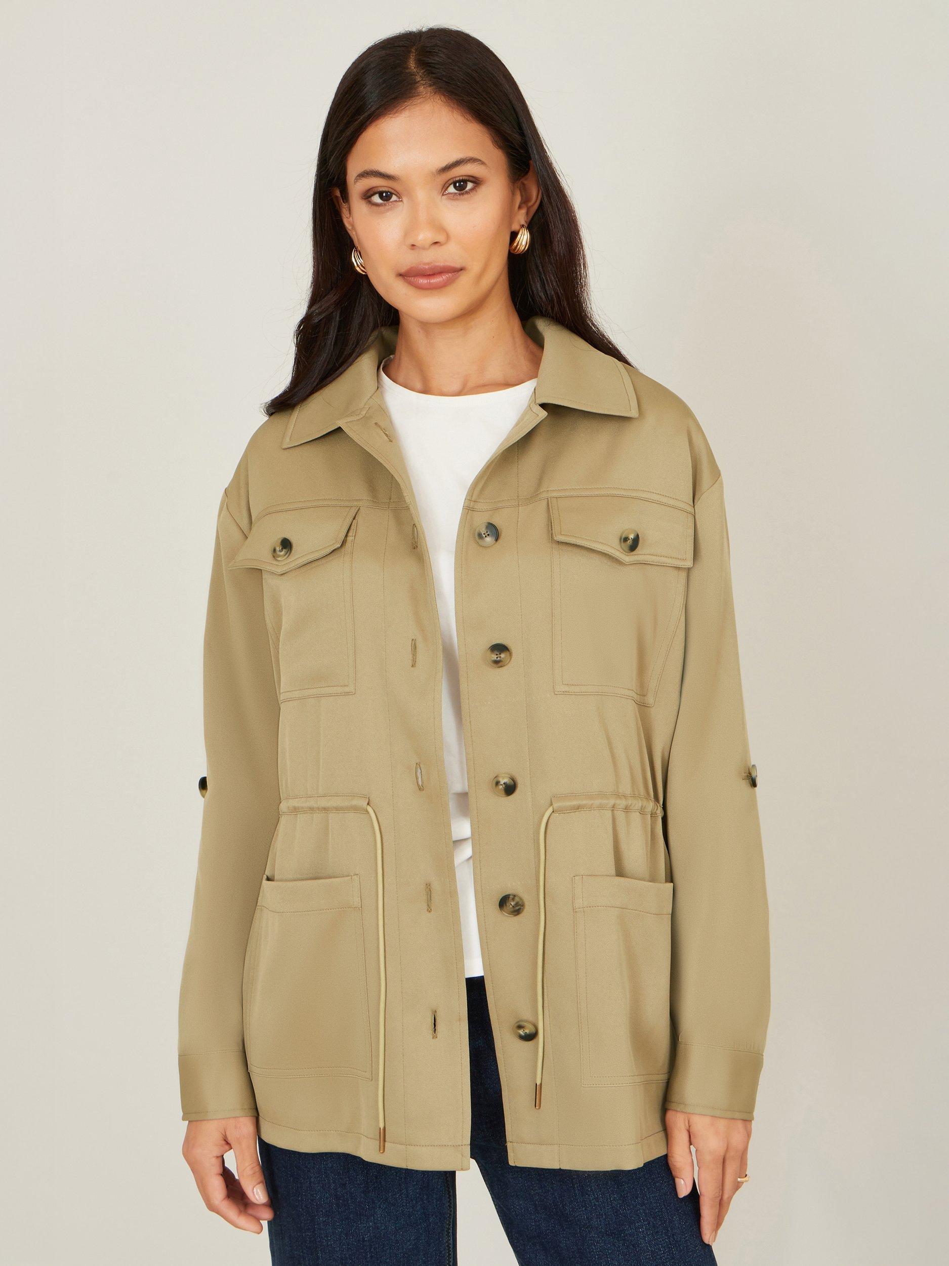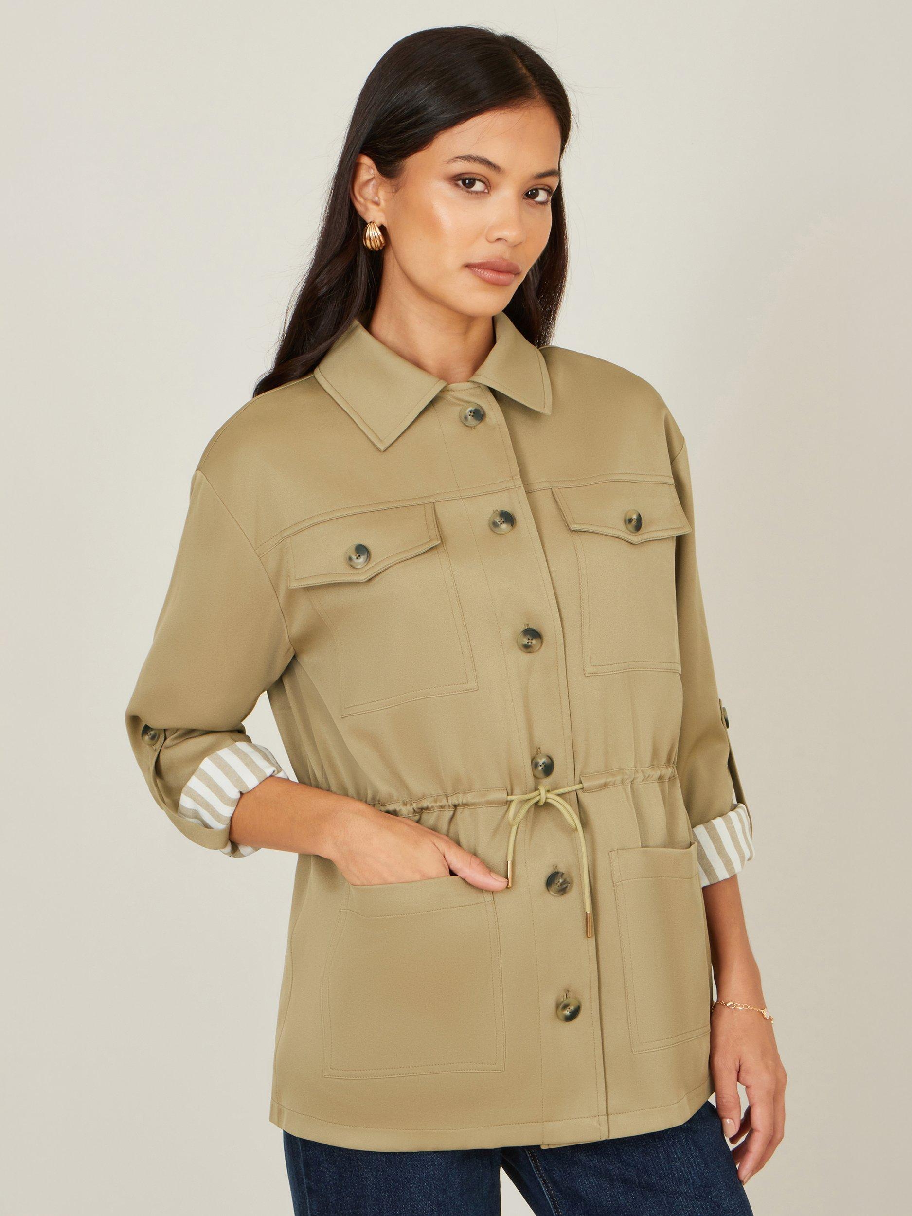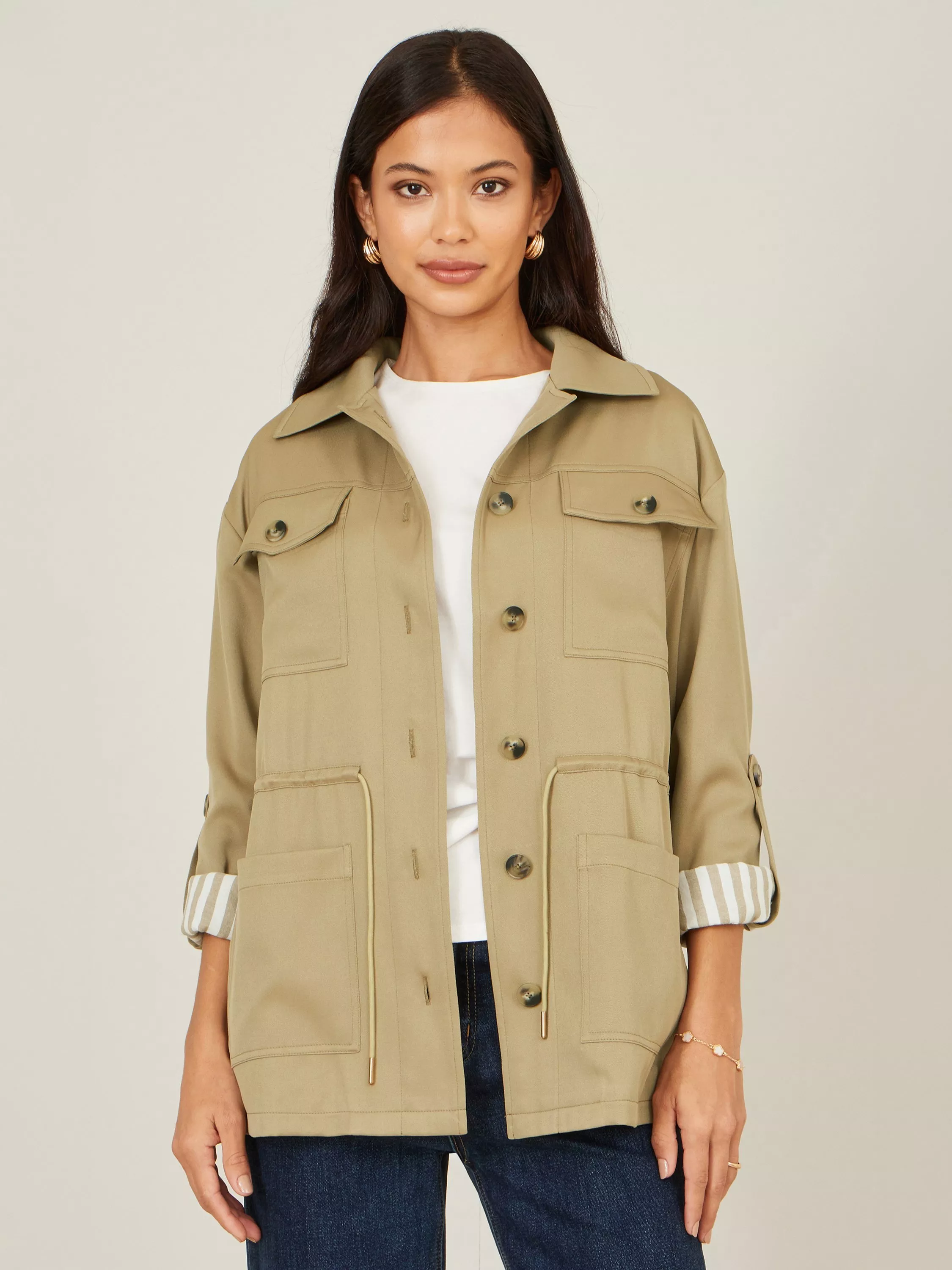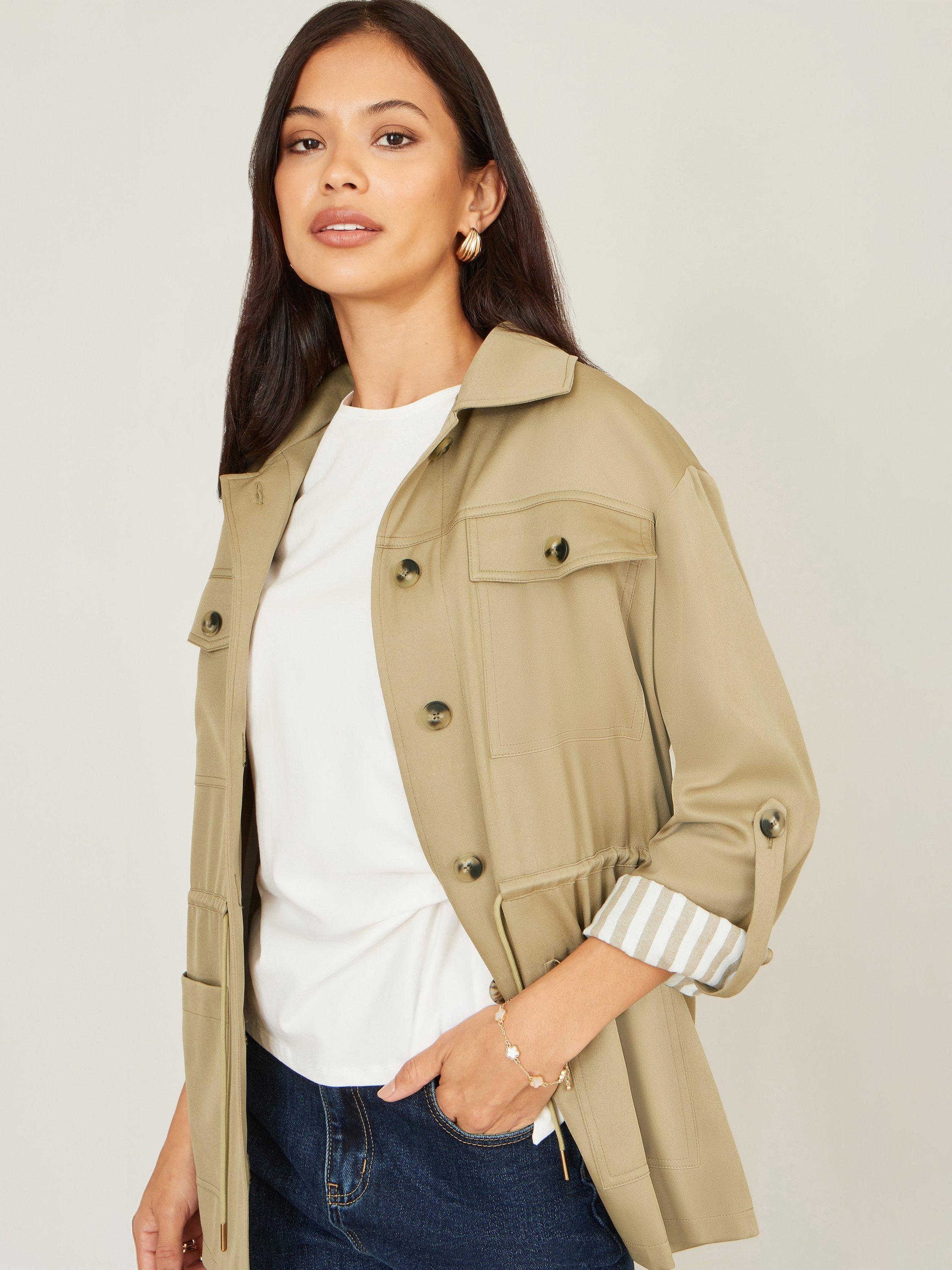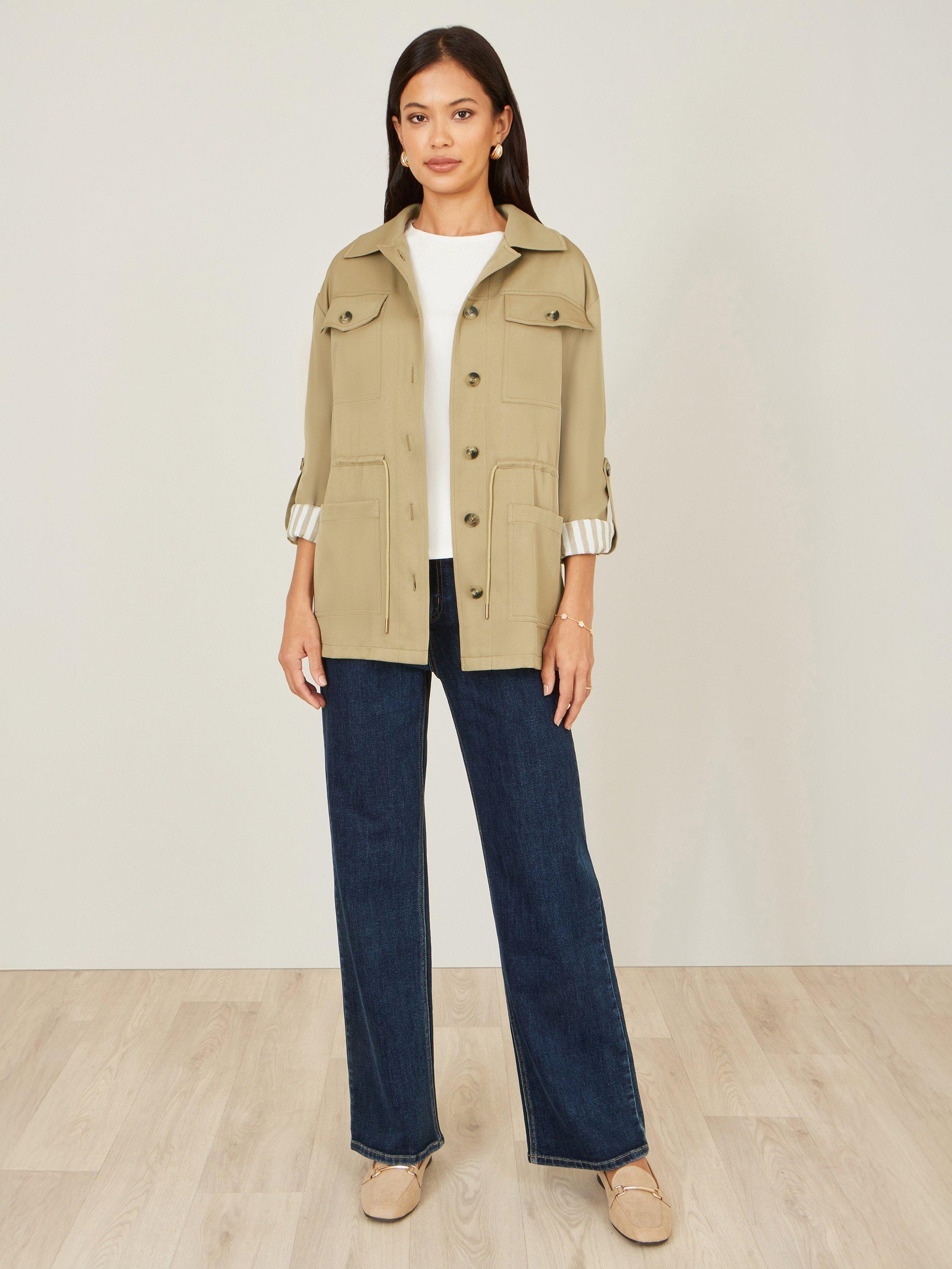 The effortless utility style of this jacket will carry you through the season with ease. Designed with a drawstring waist, practical pockets and stripe lining for added interest.