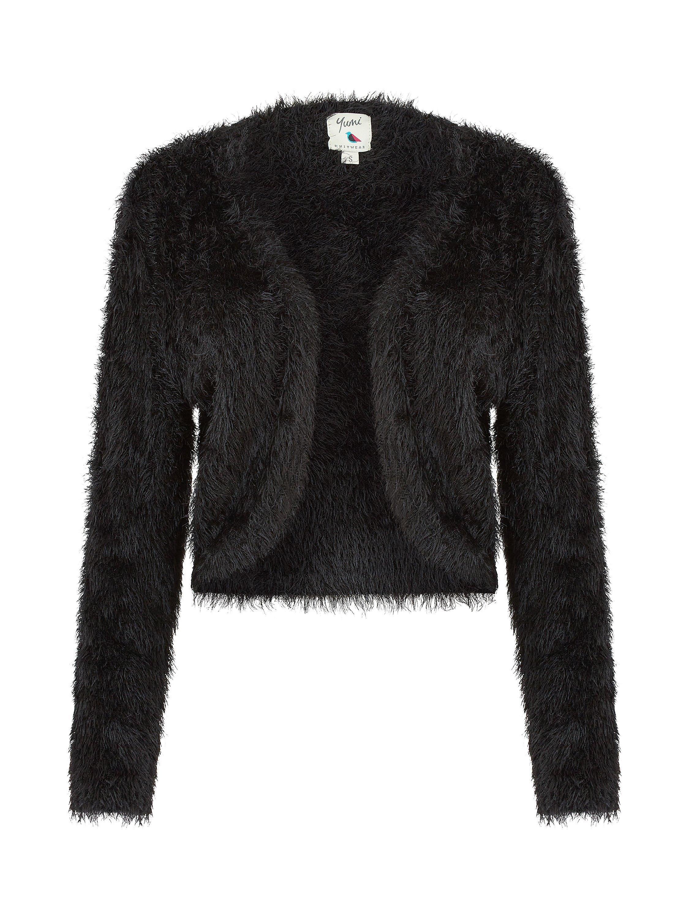 Layer up with the Yumi Eyelash Knit Bolero. Perfect to finish off an evening outfit to keep the chill off, or style with jeans and roll neck for an easy day to day look. The eyelash knit feels incredibly soft, and adds a fun twist to this classic style.
