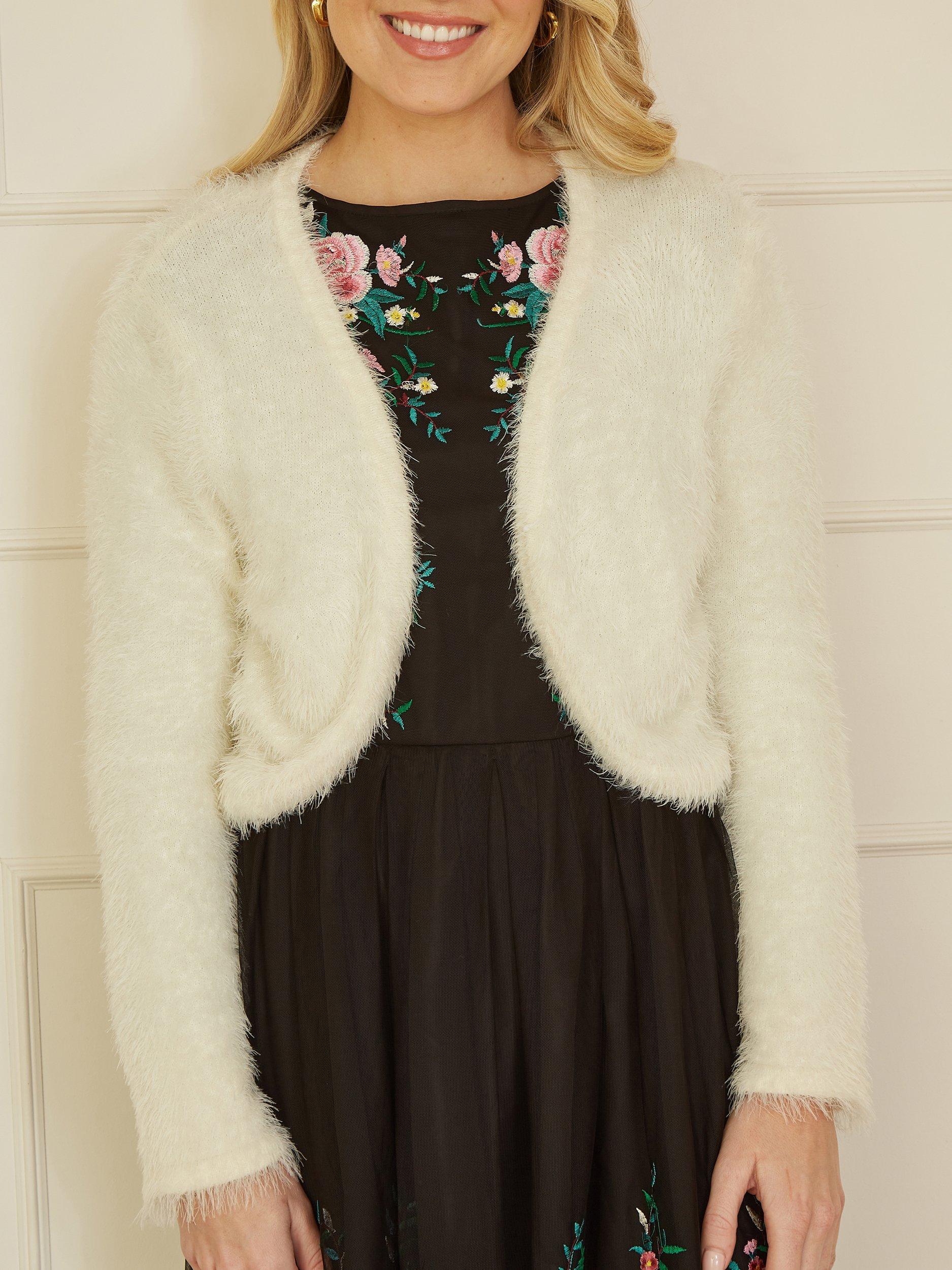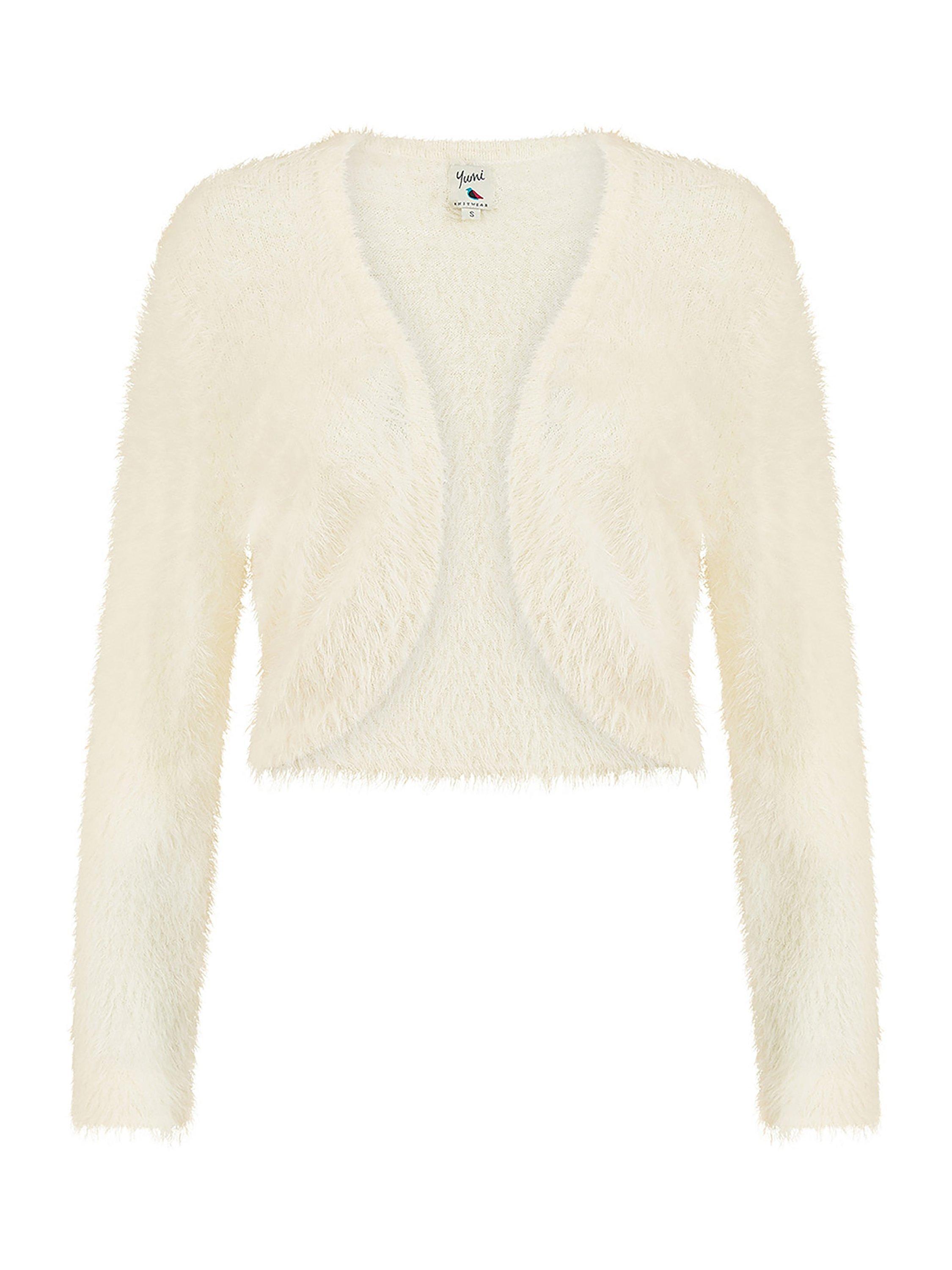 Layer up with the Yumi Eyelash Knit Bolero. Perfect to finish off an evening outfit to keep the chill off, or style with jeans and roll neck for an easy day to day look. The eyelash knit feels incredibly soft, and adds a fun twist to this classic style.