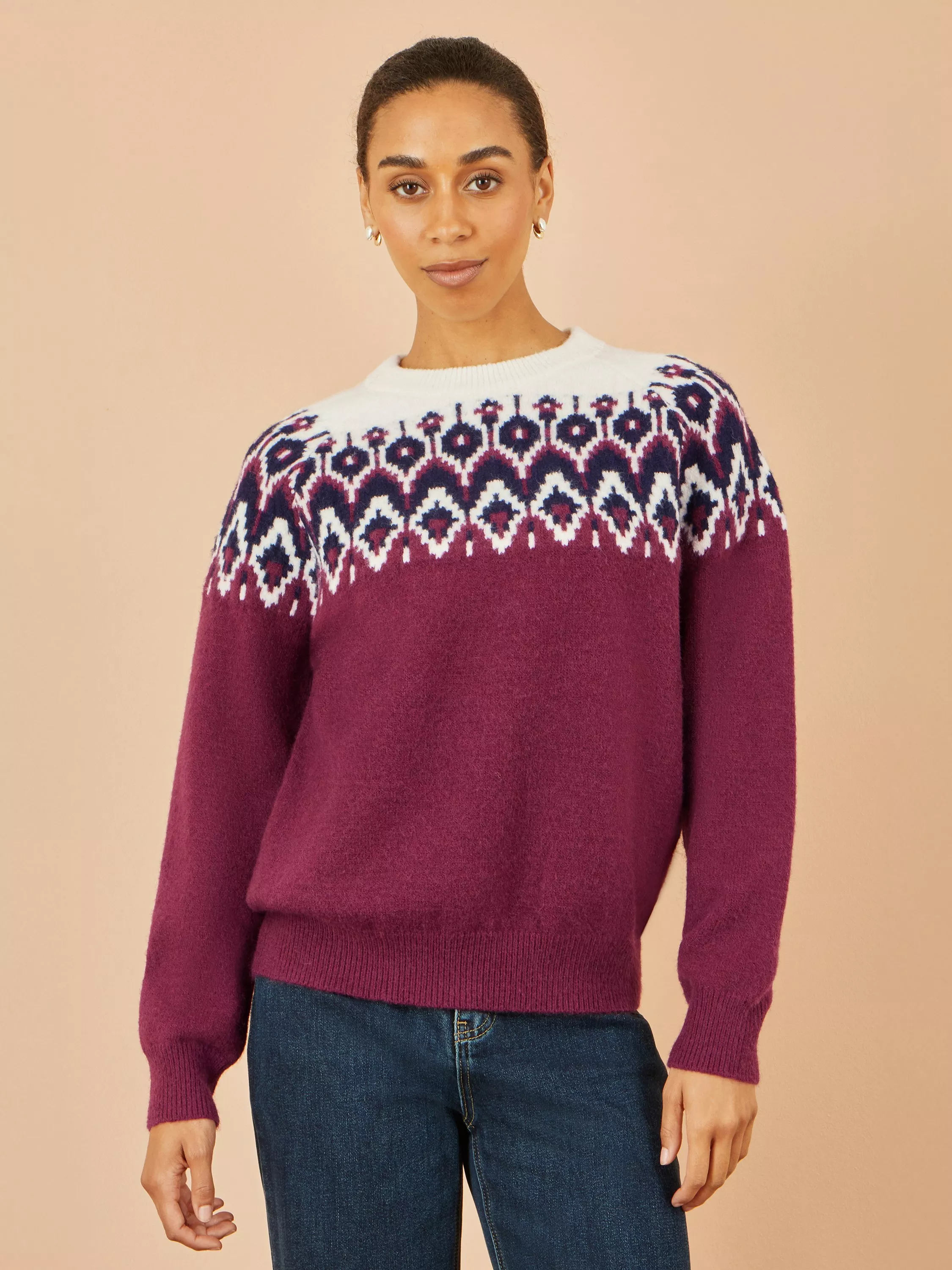 Get ready for the festive season with this Fair Isle round neck jumper by Yumi.