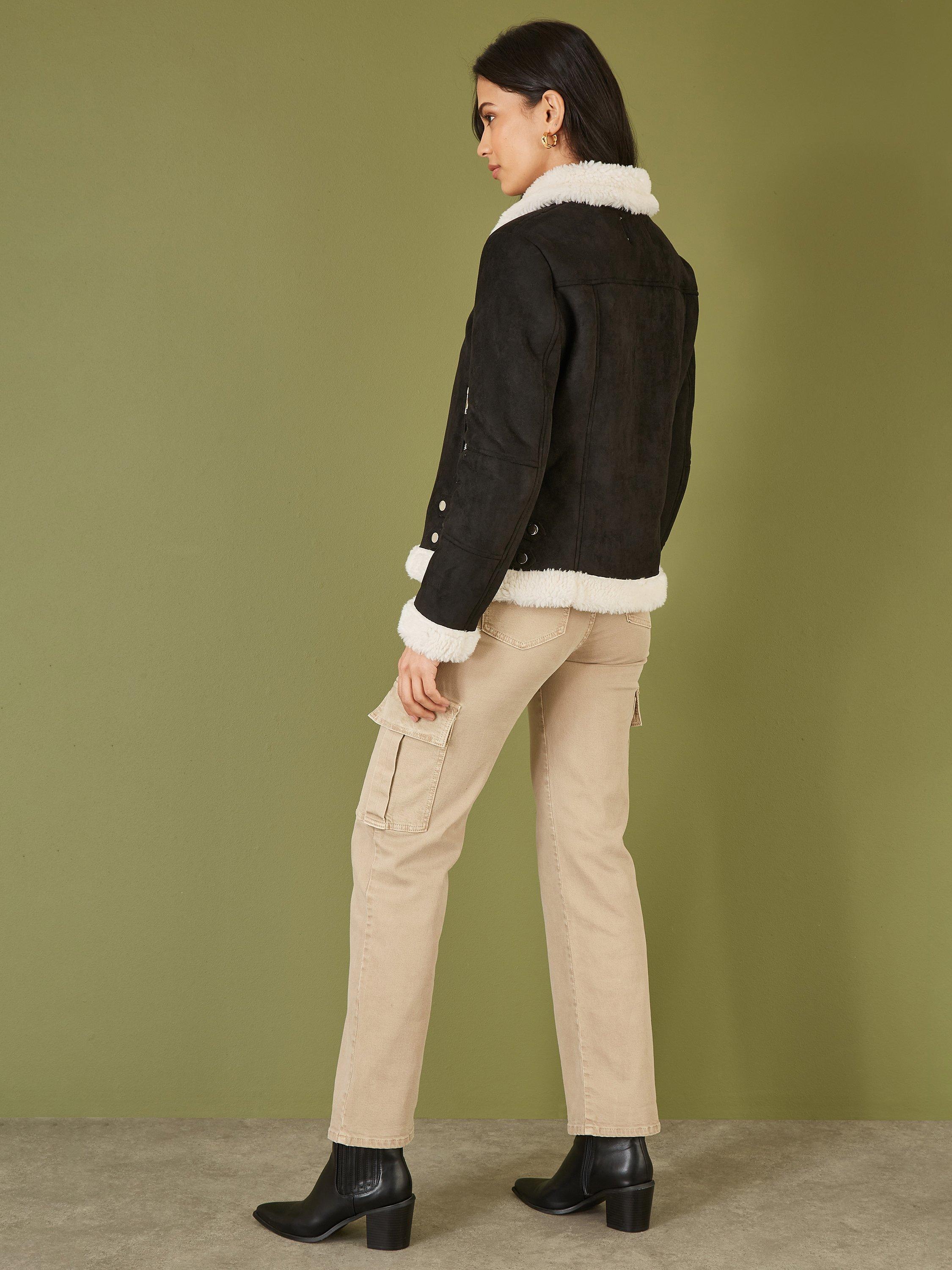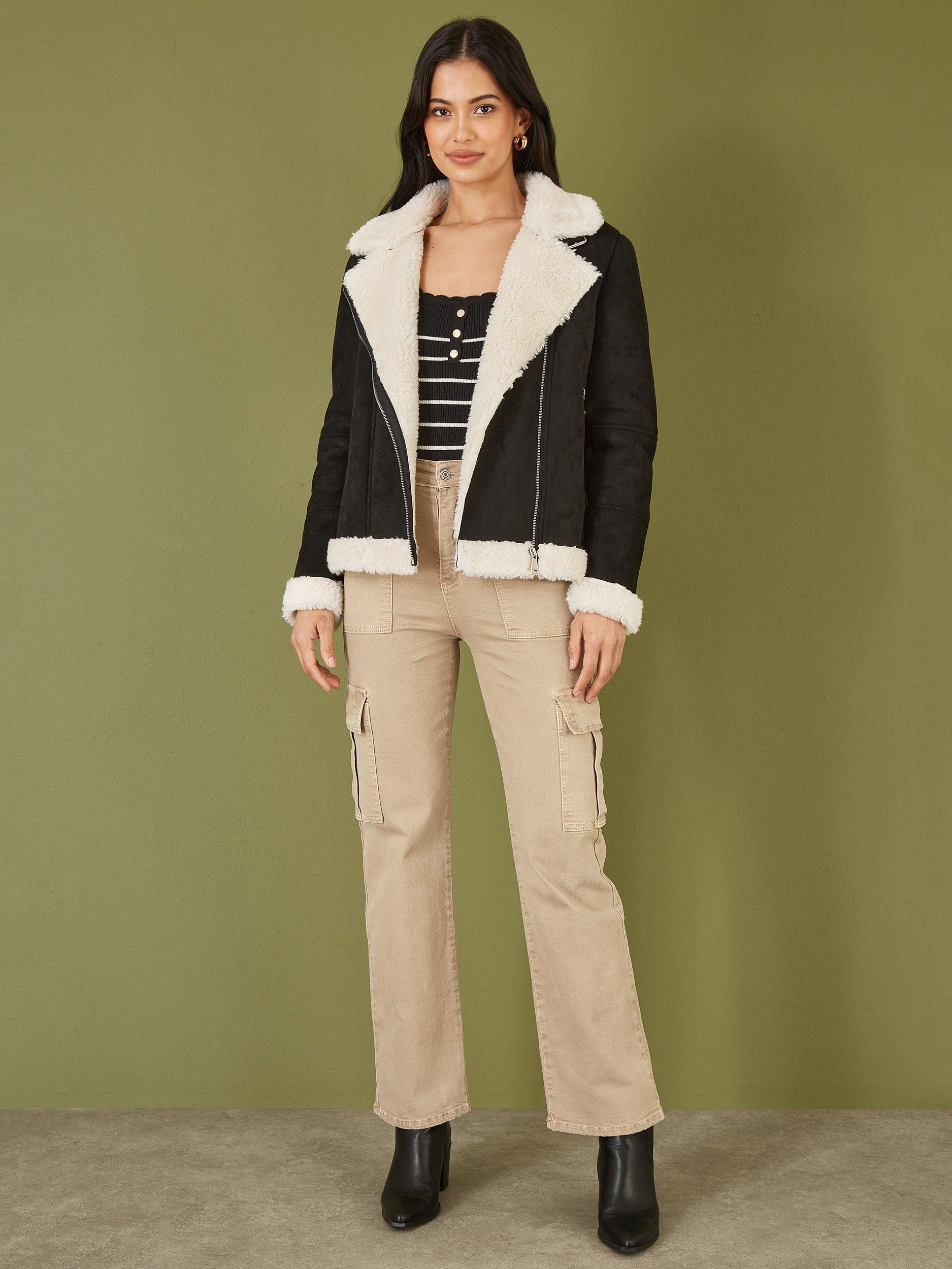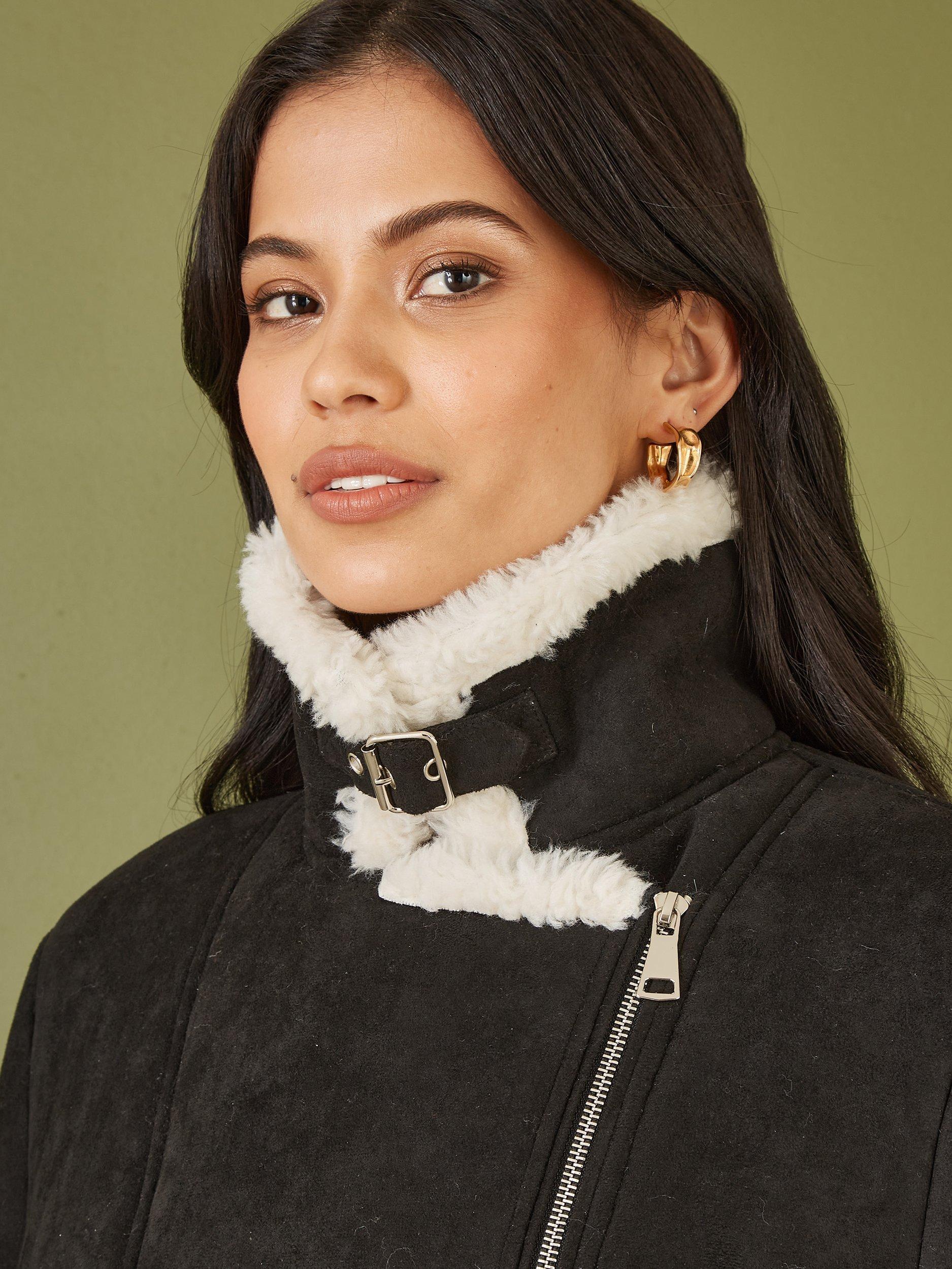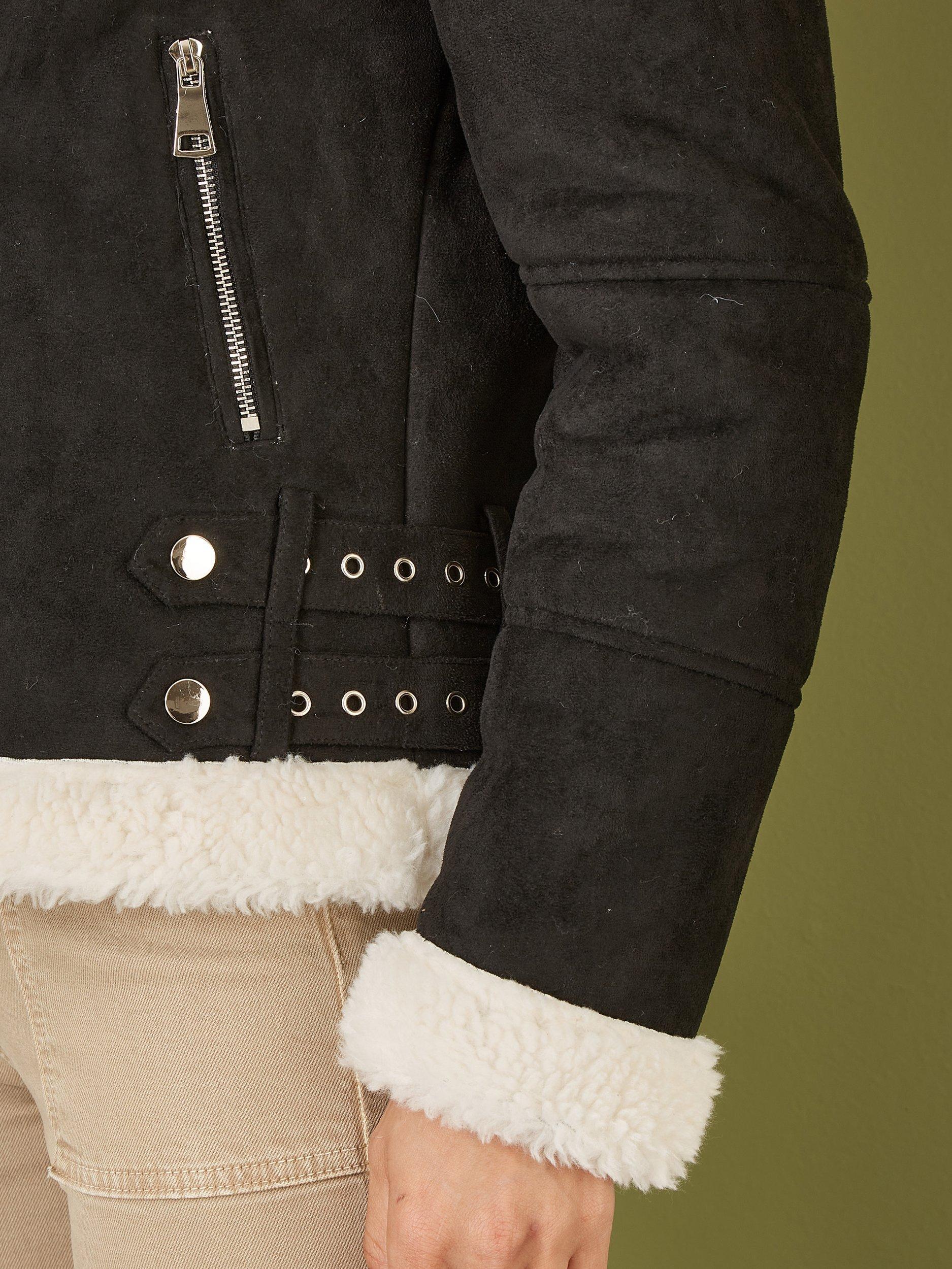 Just the ticket for your 'off-duty' look, this biker jacket from Yumi features a faux shearling collar and cuffs. Looking great over your everyday fots, it's finished with zipper and buckle detailing.