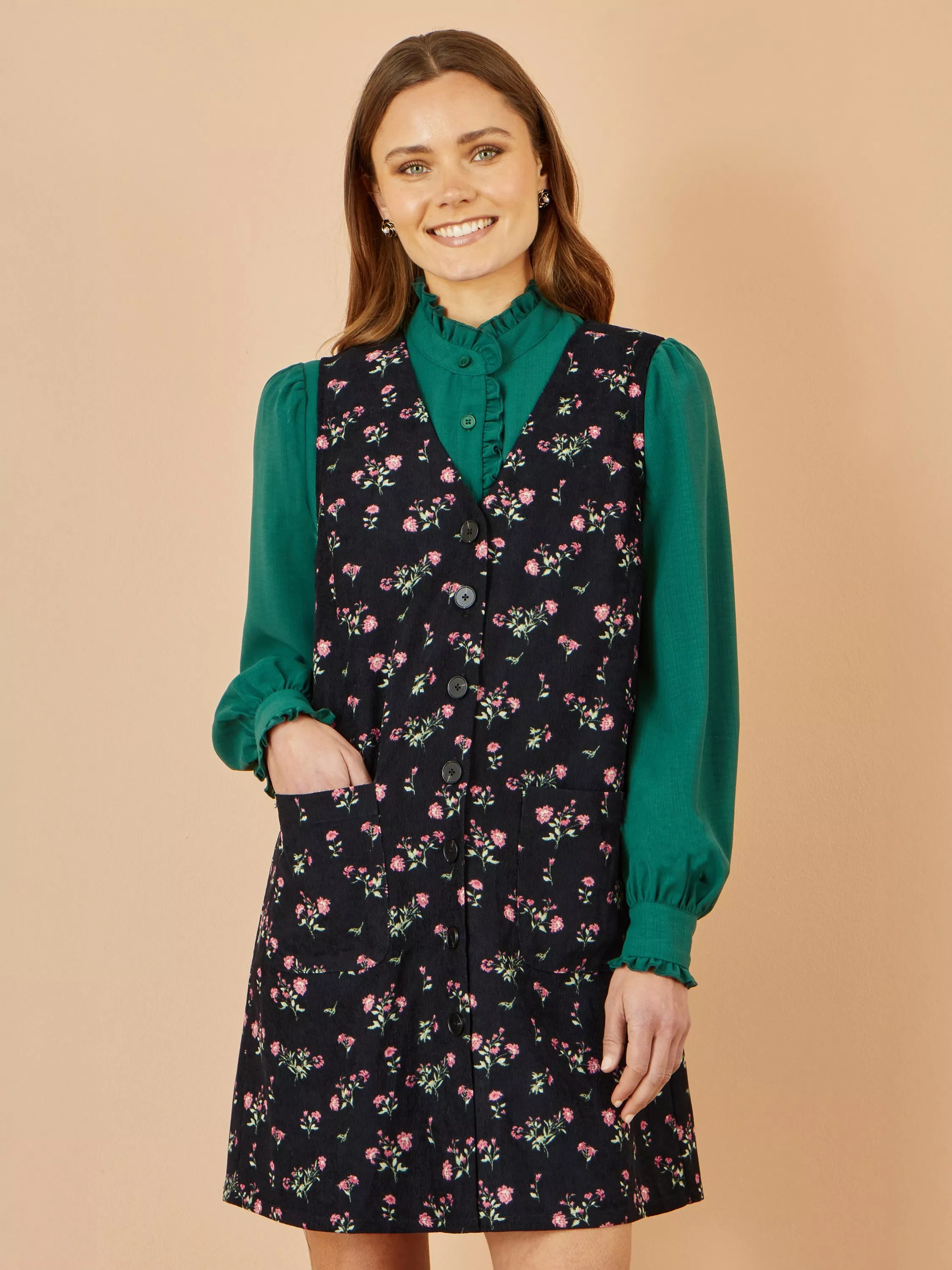 For the changing season, we love this cute pinafore dress. Perfect for styling with a roll neck or crisp white shirt underneath and some sneakers. In a luxe feeling fabric, the all-over floral print gives this piece its pretty everyday feel. The button-down design and front pockets add some details, while the fit is simple and flattering.