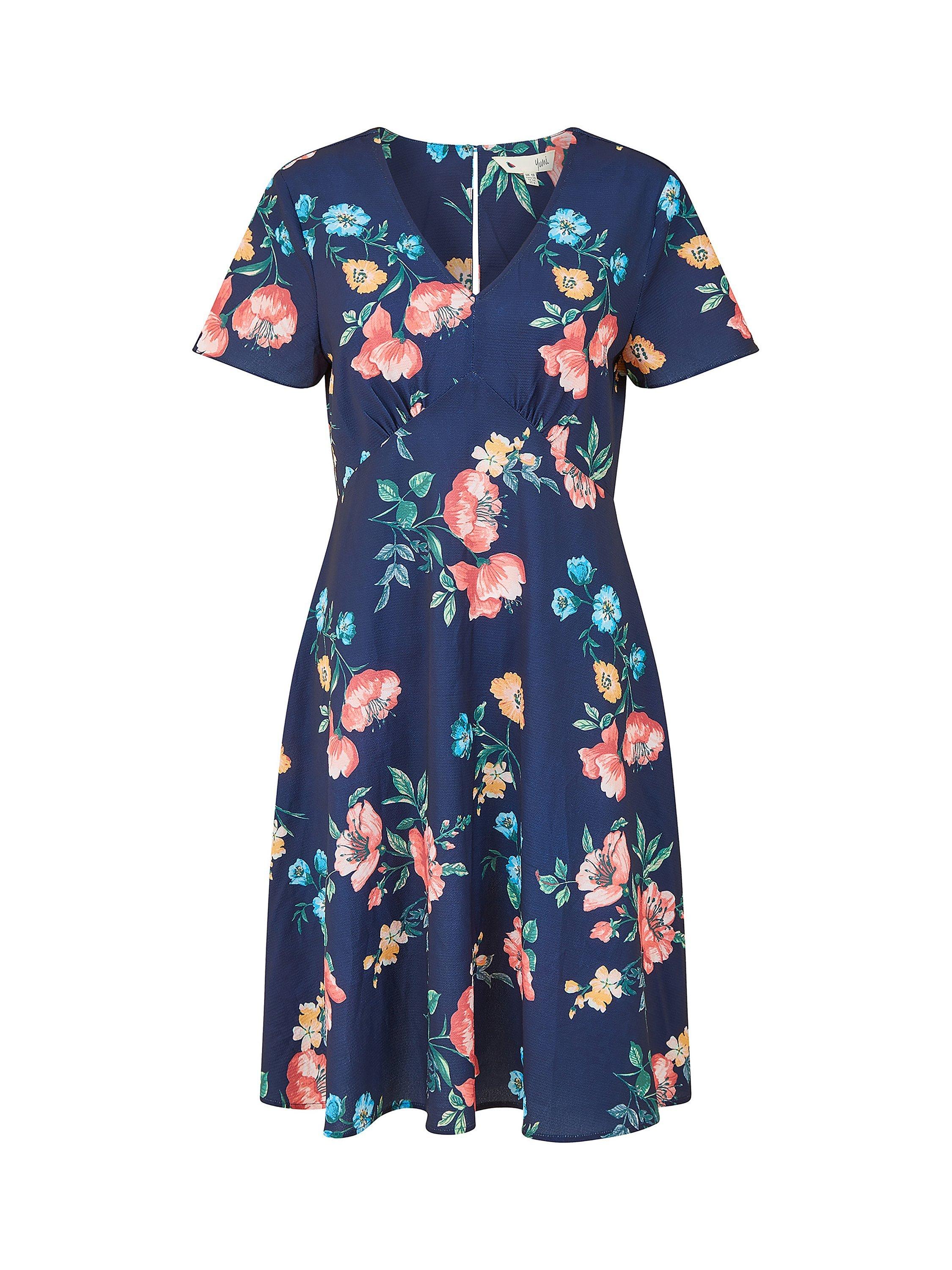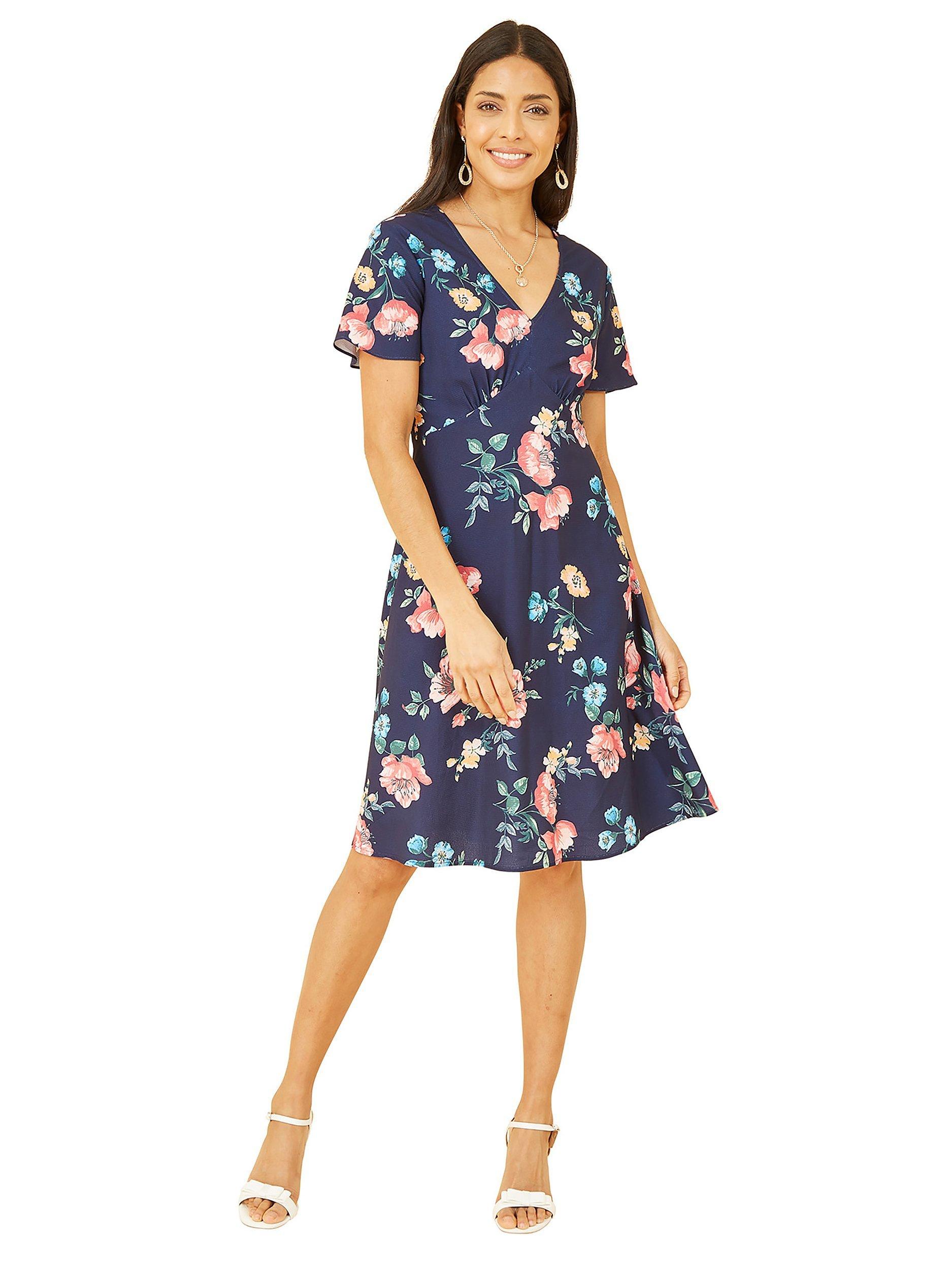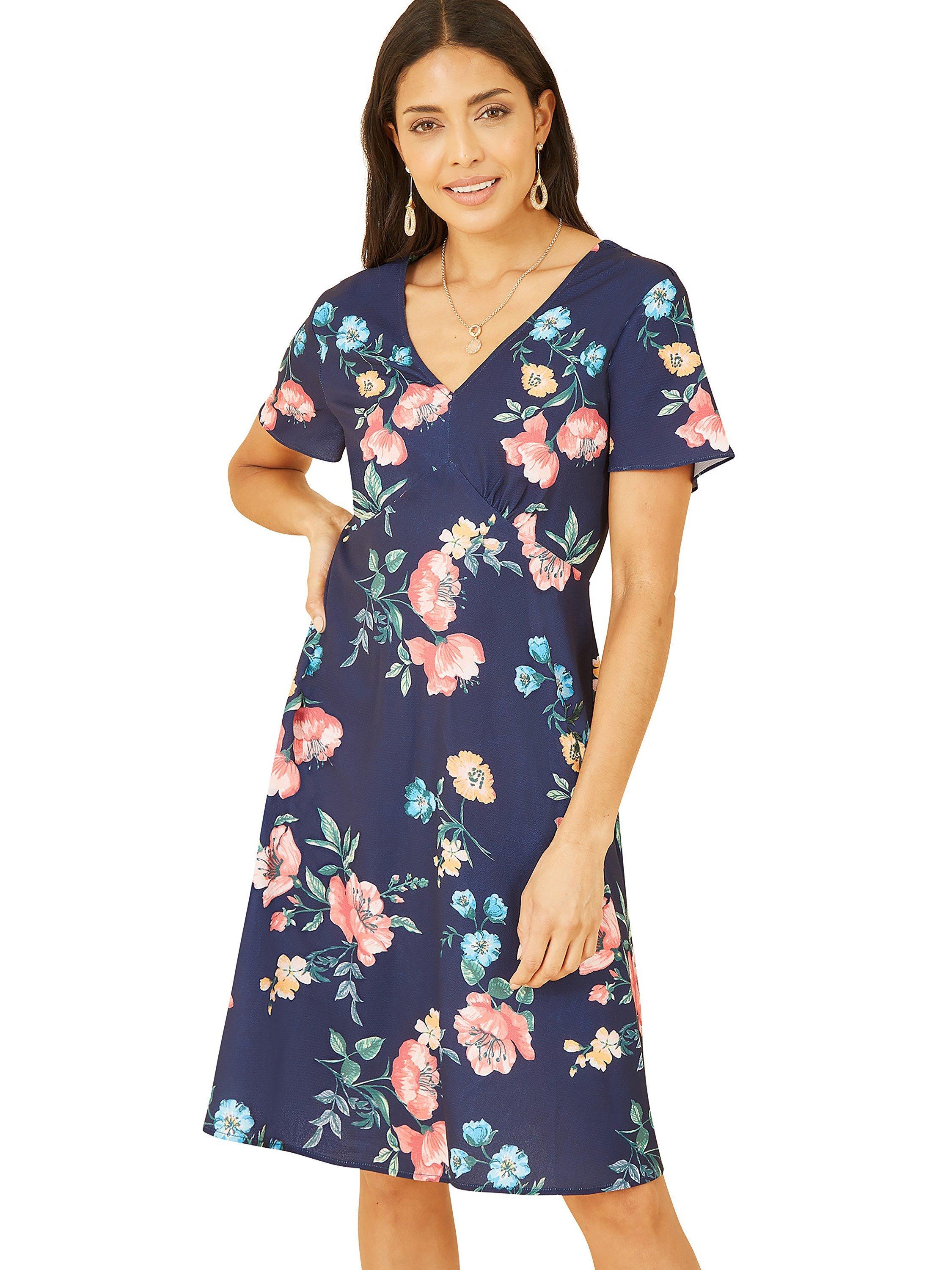 A tried-and-true favourite, this knee length dress from Yumi is made using a synthetic fabric. With a fuss-free but smart v-neckline and short sleeves, it effortlessly charms with a timeless floral.