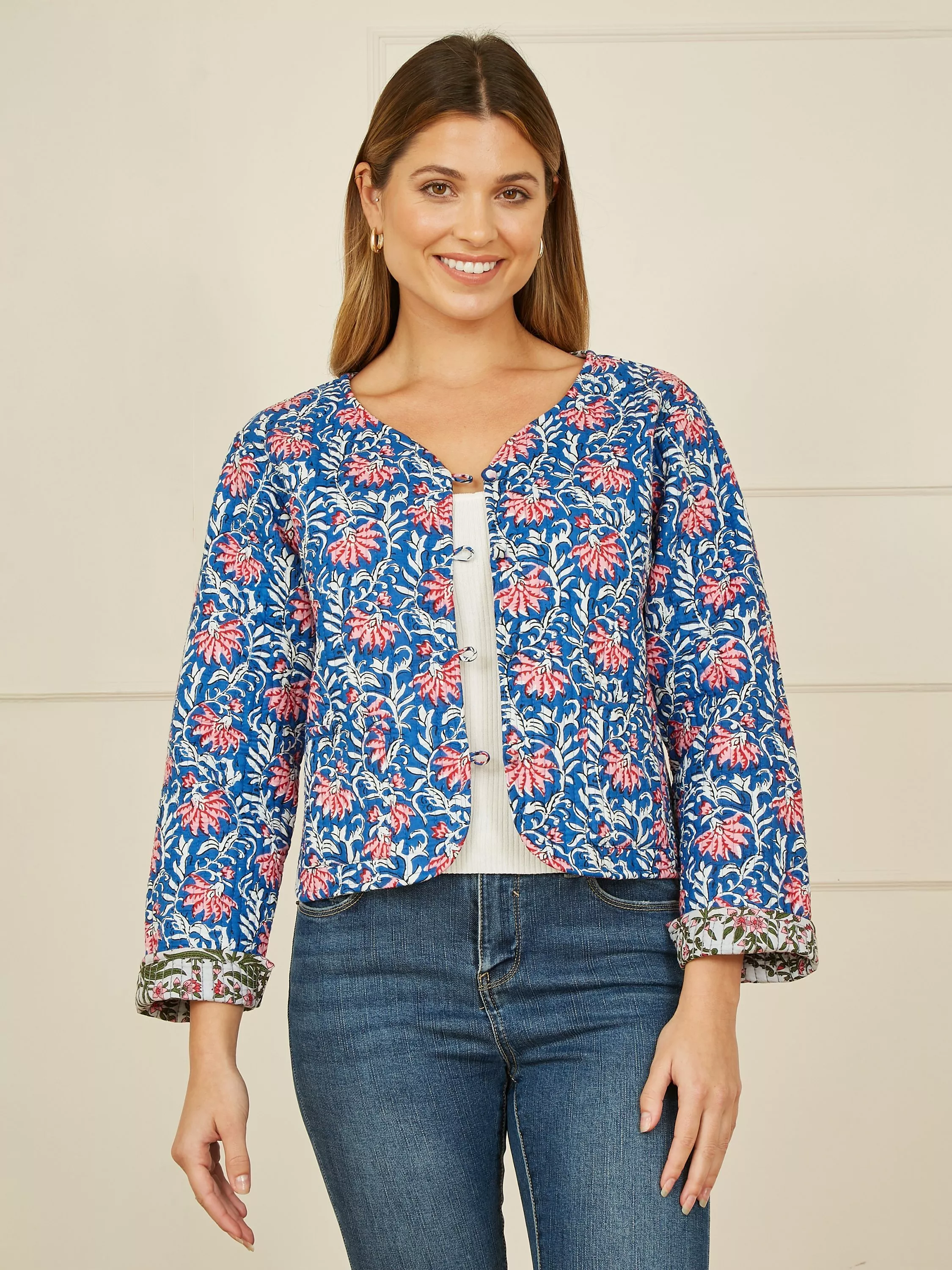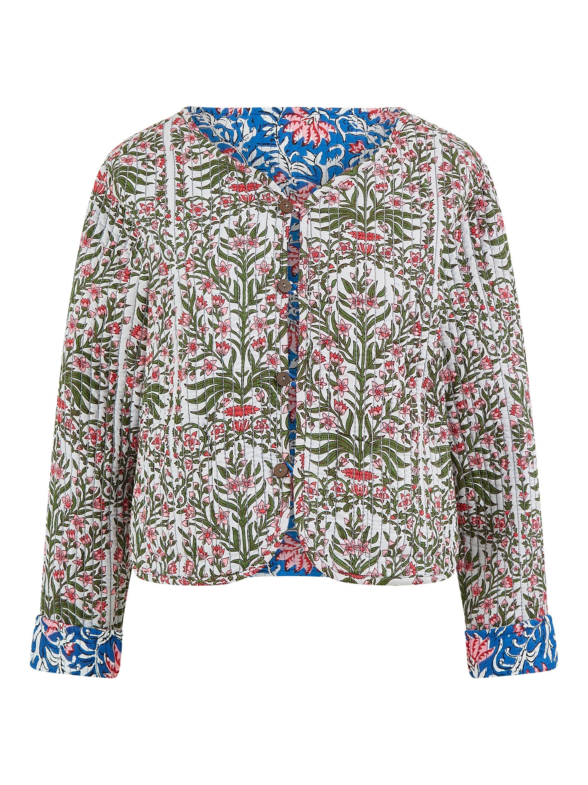 For bang on trend outerwear for the summer we love this quilted jacket from Yumi. Made using a traditional quilting technique, from lightweight cotton, this reversible garment really is a show stopper. With a different unique print on the inside, the tags and care labels are sewn into the pockets so you can change your look easily. Pair with jeans and a T-shirt for an off duty look, or 2!