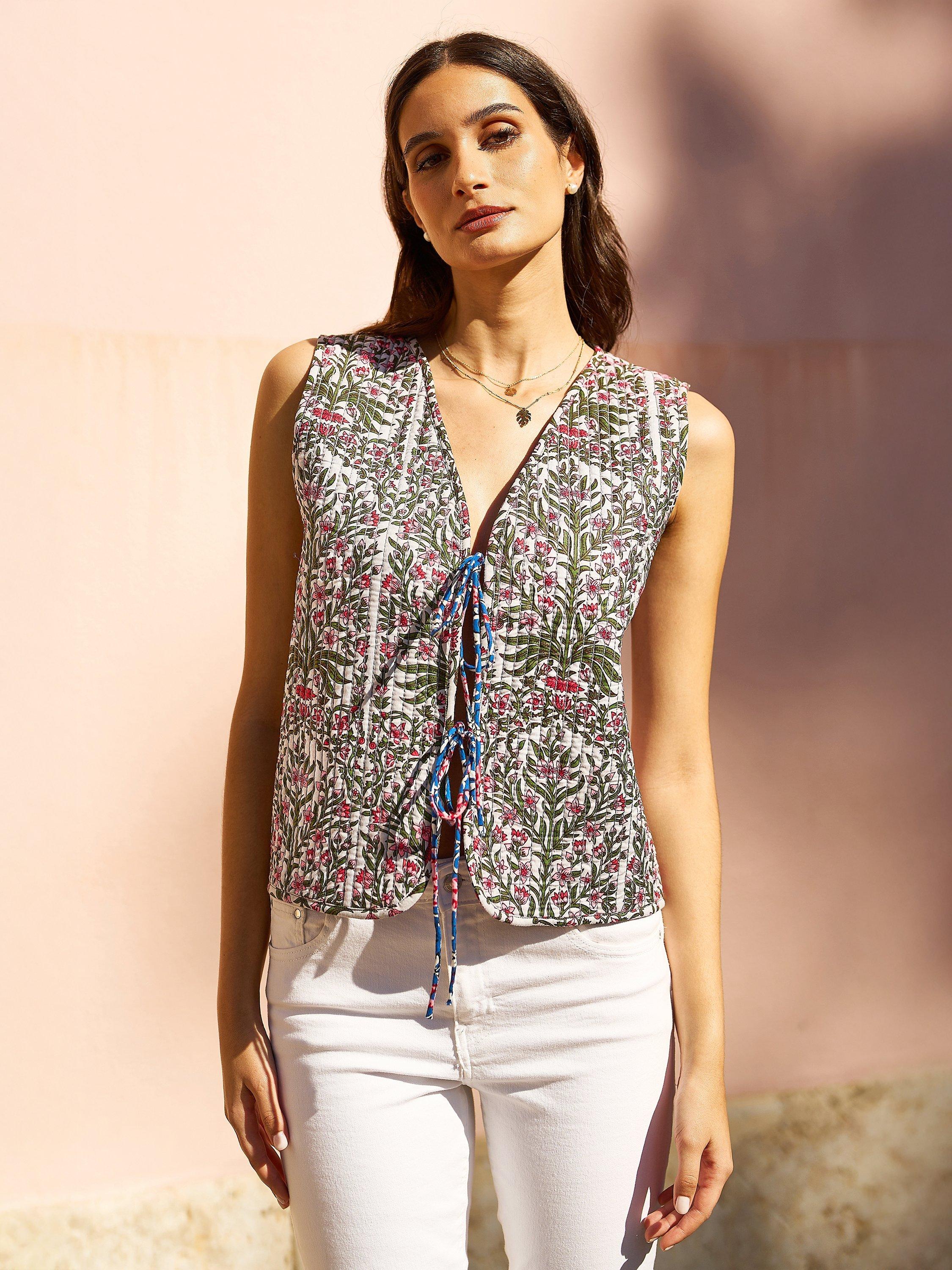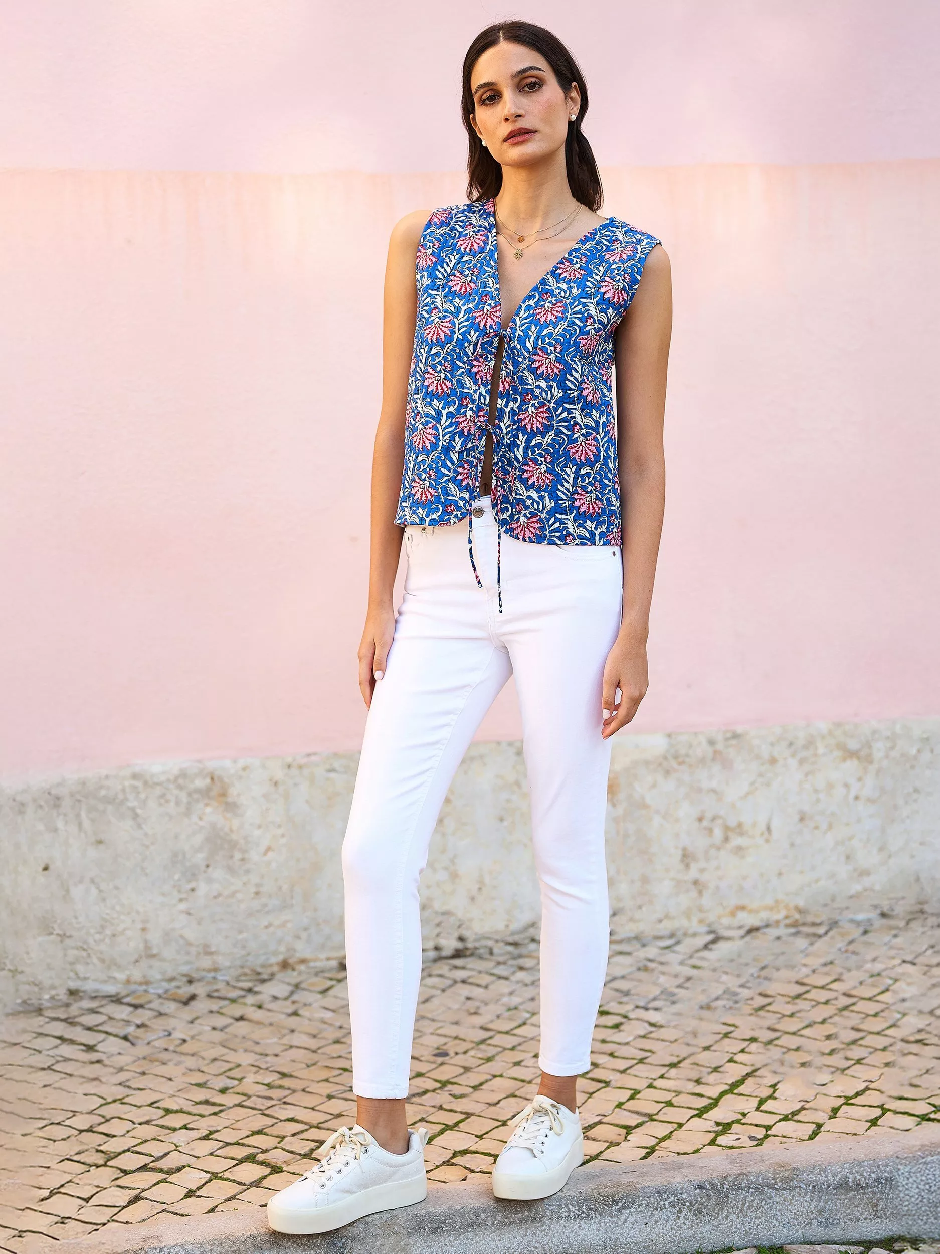 Add a little whimsy into your day time dressing with this waistcoat from Yumi. The bold and on trend Flower print, paired with the reversible lining make this super fun addition to your wardrobe for the spring. Wear with a roll neck and jeans or style over dresses when the sun shines.