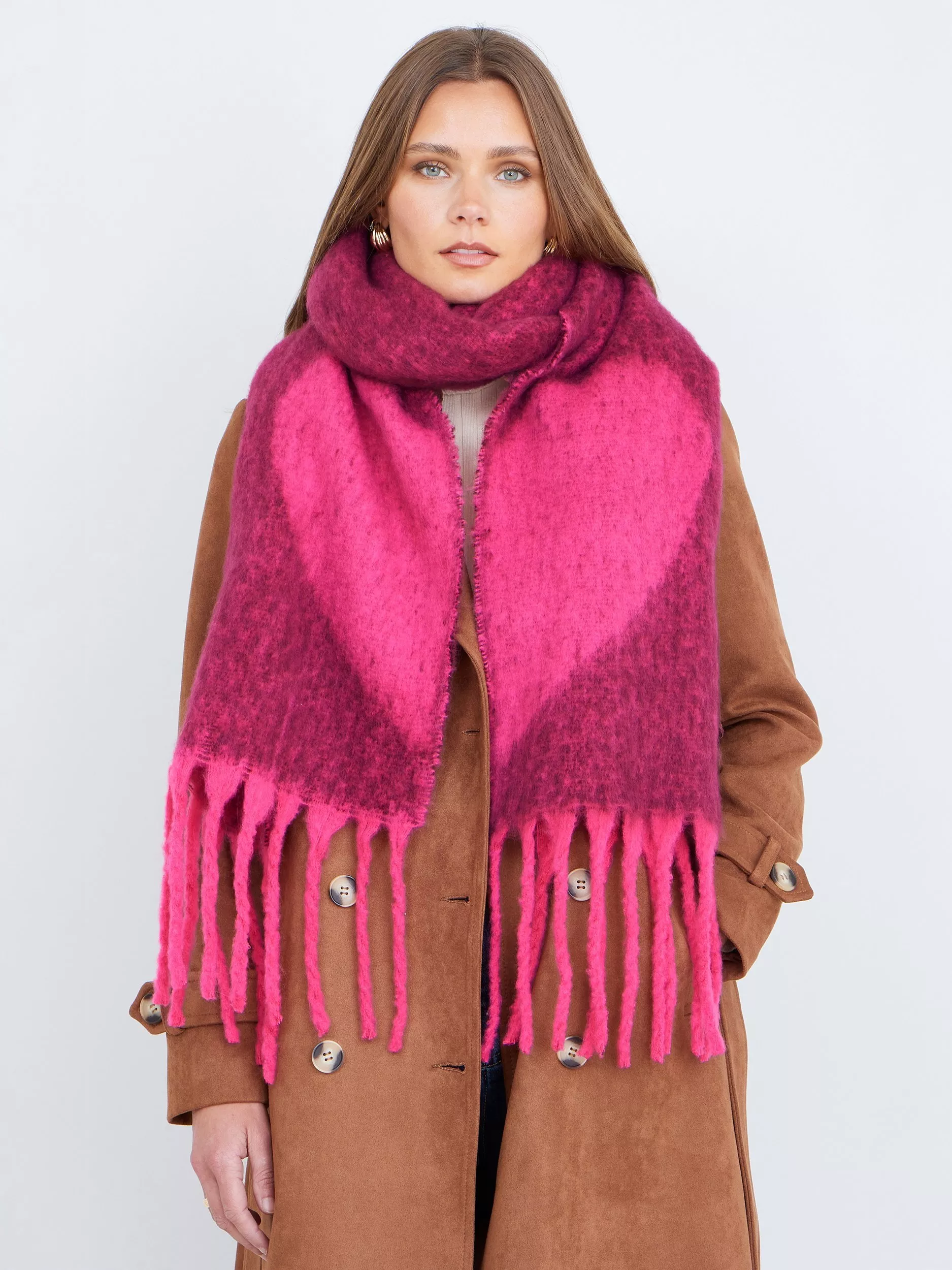 Wrapping you up warm, this scarf from Yumi boasts a bold heart motif and comes in an ultra-soft brushed texture. Finished with statement fringed edges for extra style.
