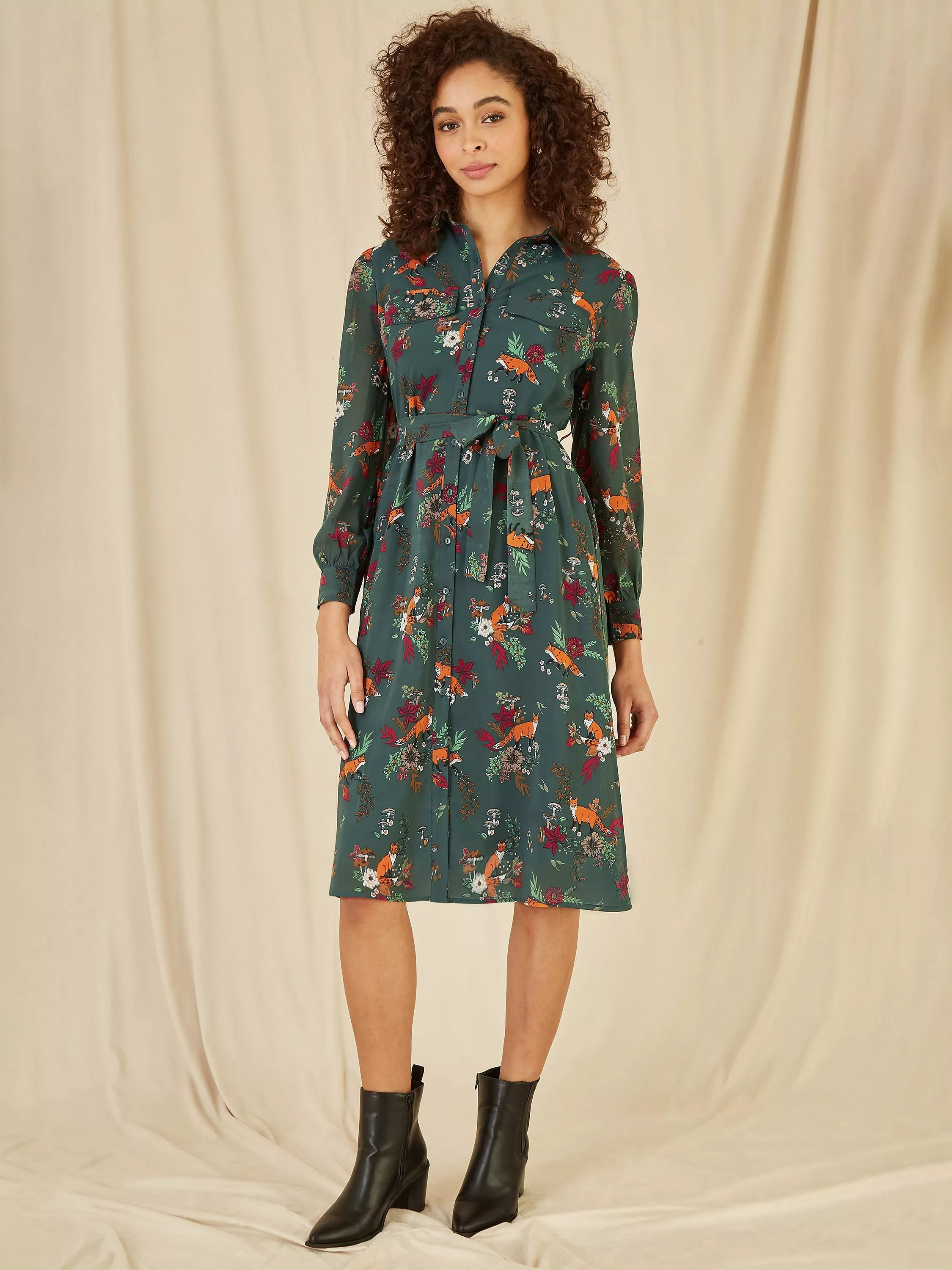 If the new season has you feeling foxy then this shirt dress, made from recycled materials is the perfect fit for you. In an exclusive in-house design from Yumi, the all-over fox print is truly adorable in a classic button-down dress shape with sheer sleeves and a tie waist belt. This is perfect for days out with trainers and a denim jacket to finish the look!