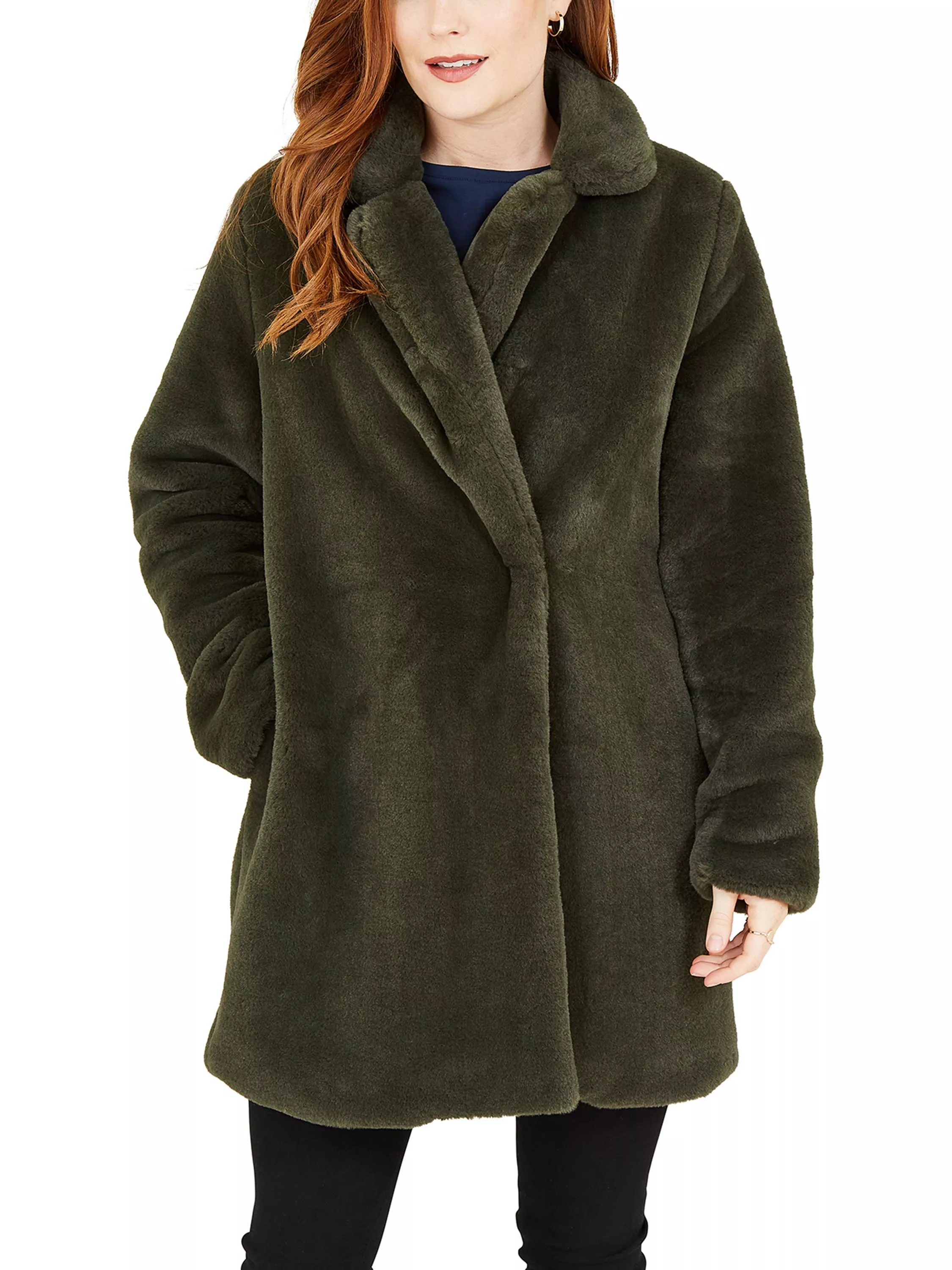 Smart, bold and luxurious, this Yumi Khaki Faux Fur Coat is irresistable new season outerwear. Crafted from supersoft faux fur, this classic coat features a collar and invisible fastening. Easy wear anywhere, perfect for layering over office or weekend wear.
