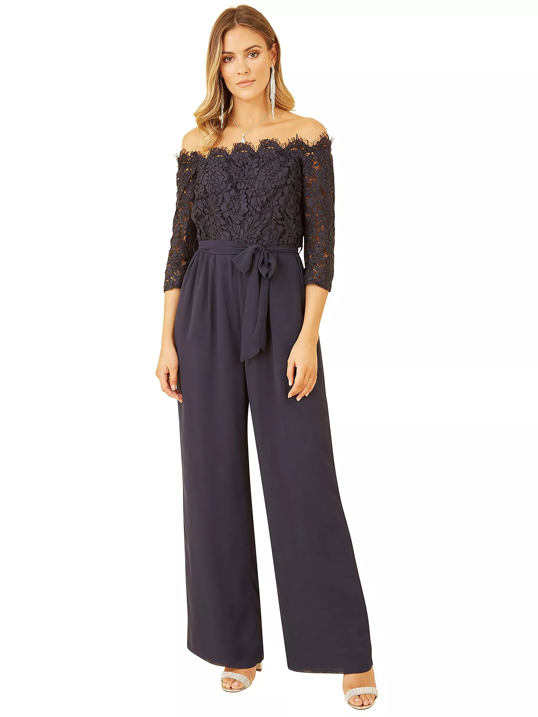 YumiLace Bardot Jumpsuit, Navy